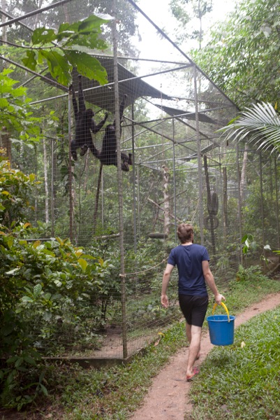 There were serious considerations made to put both Loki and Samara (adult male and female woolly monkeys) in an enclosure this month. Samara had recently been showing the volunteers a lot of attention as she reaches sexual maturity. This isn’t the first time we’ve had this problem at EV and a great deal of time and effort is taken to do what is best for the monkey whilst taking human safety into consideration as well. Samara had started following volunteers around, making their day to day jobs much harder. Additionally, Samara had started following volunteers into areas of the forest where the locals, and their dogs, frequent, putting her at increased risk.