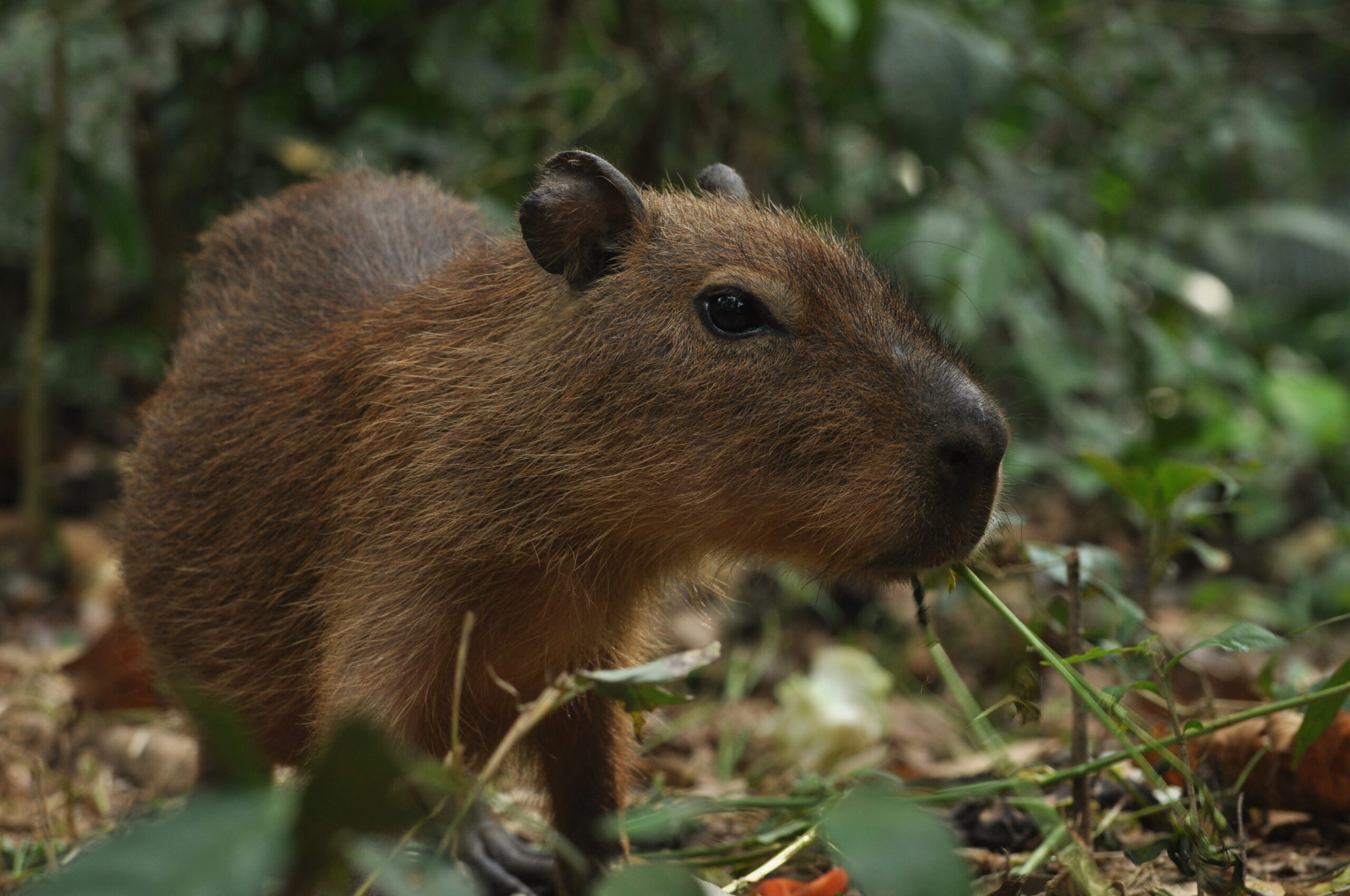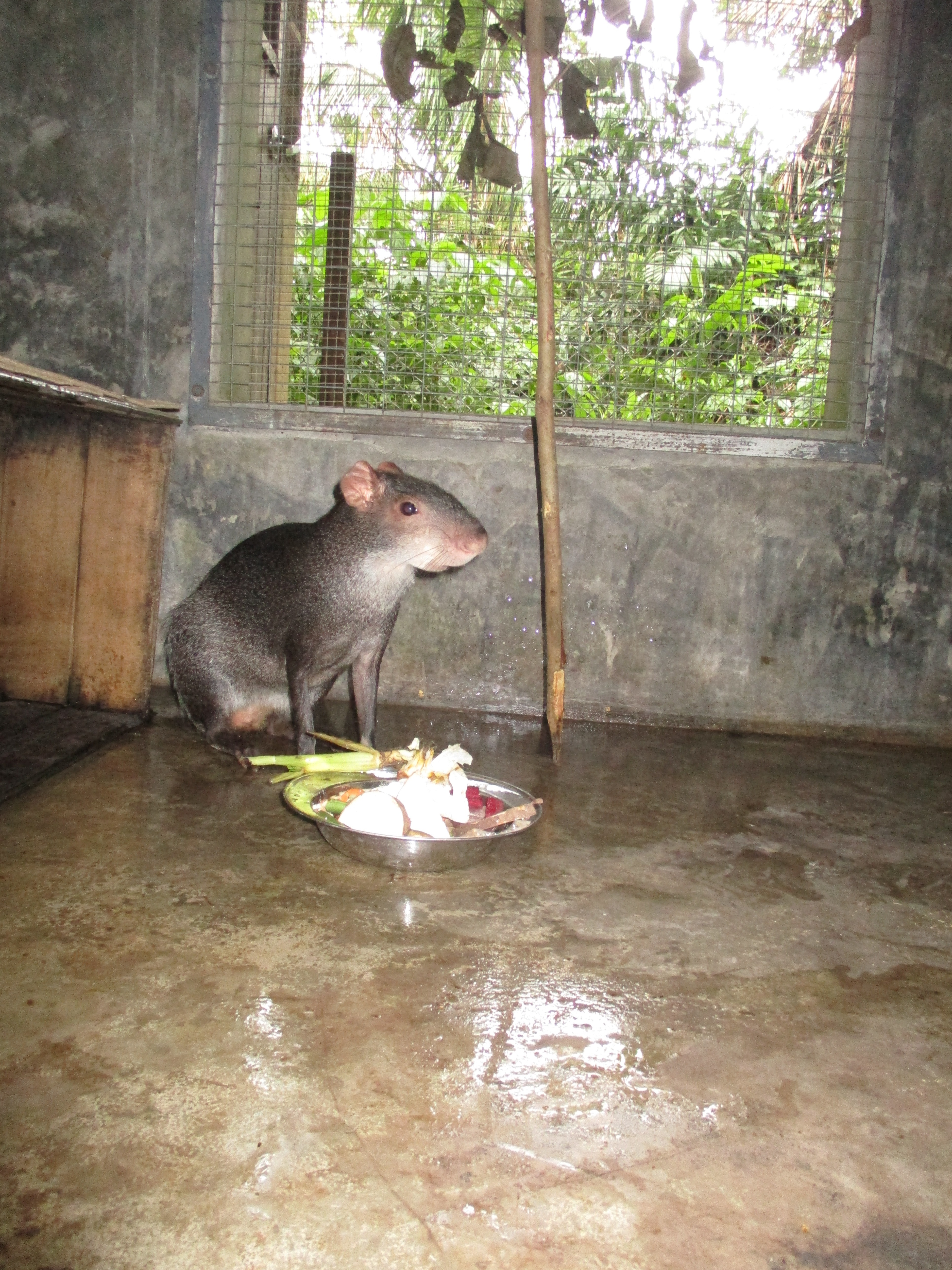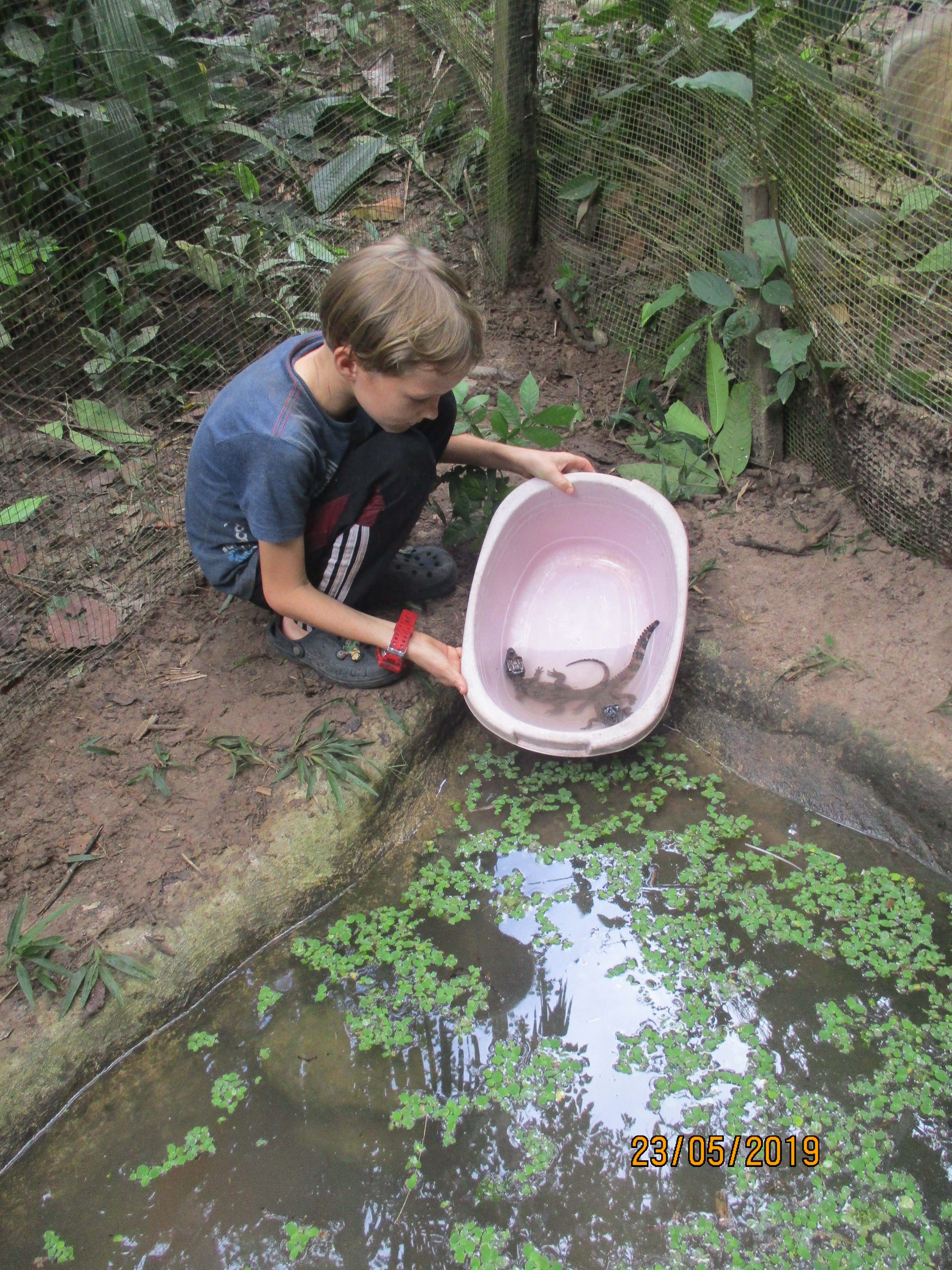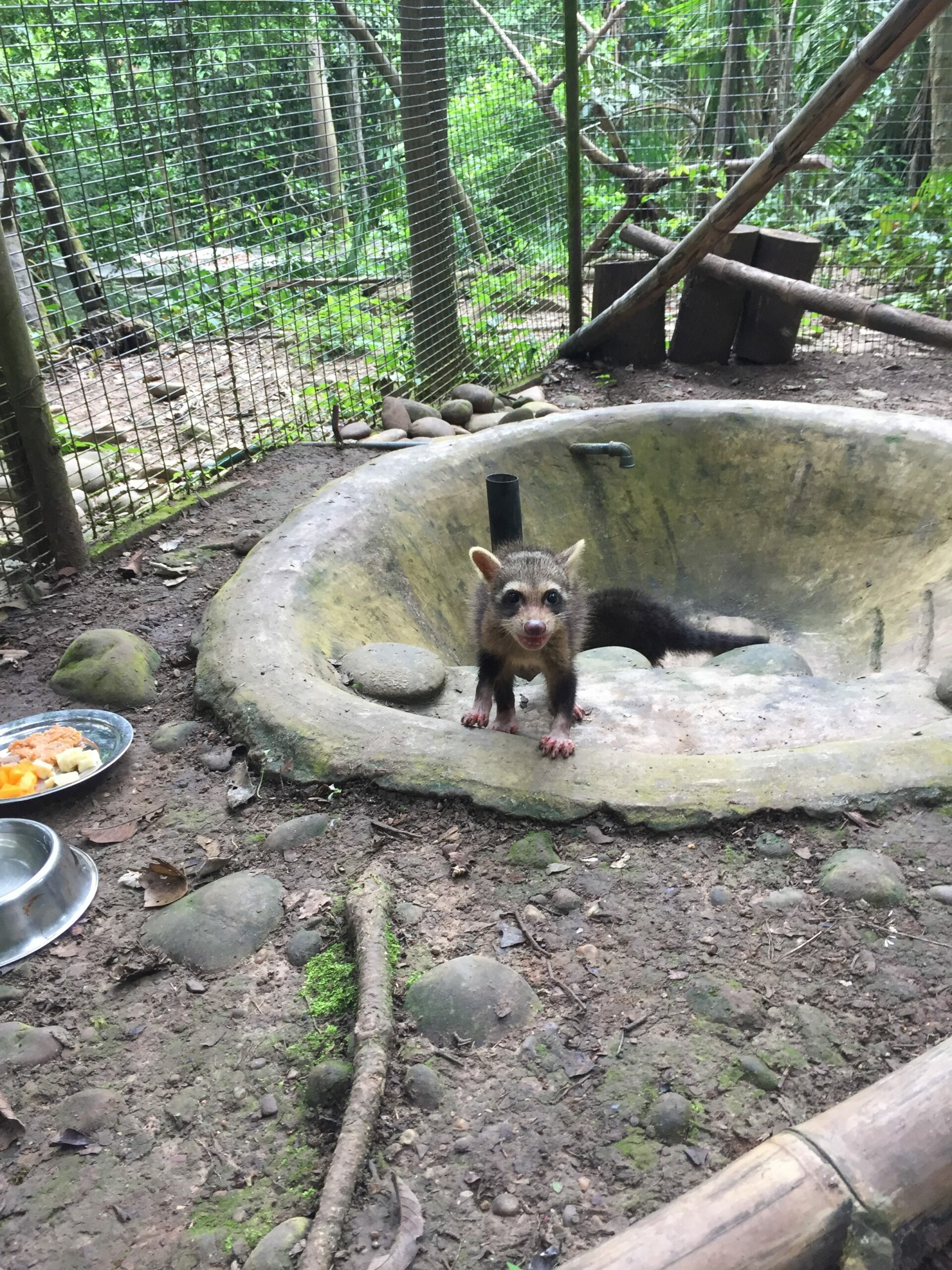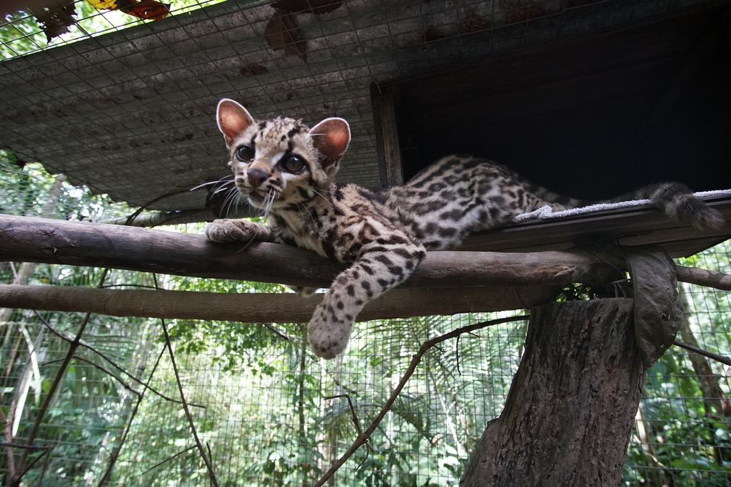 Fonzo (male capybara) was moved from the clinic and now resides in the Momo enclosure. This is an open topped enclosure around the long-term volunteer cabin. He seems to enjoy the large space and his own pond. Fonzo is adapting well to the situation, which we are grateful for as capybaras can grow up to sixty kilograms, so having him friendly certainly is advantageous.