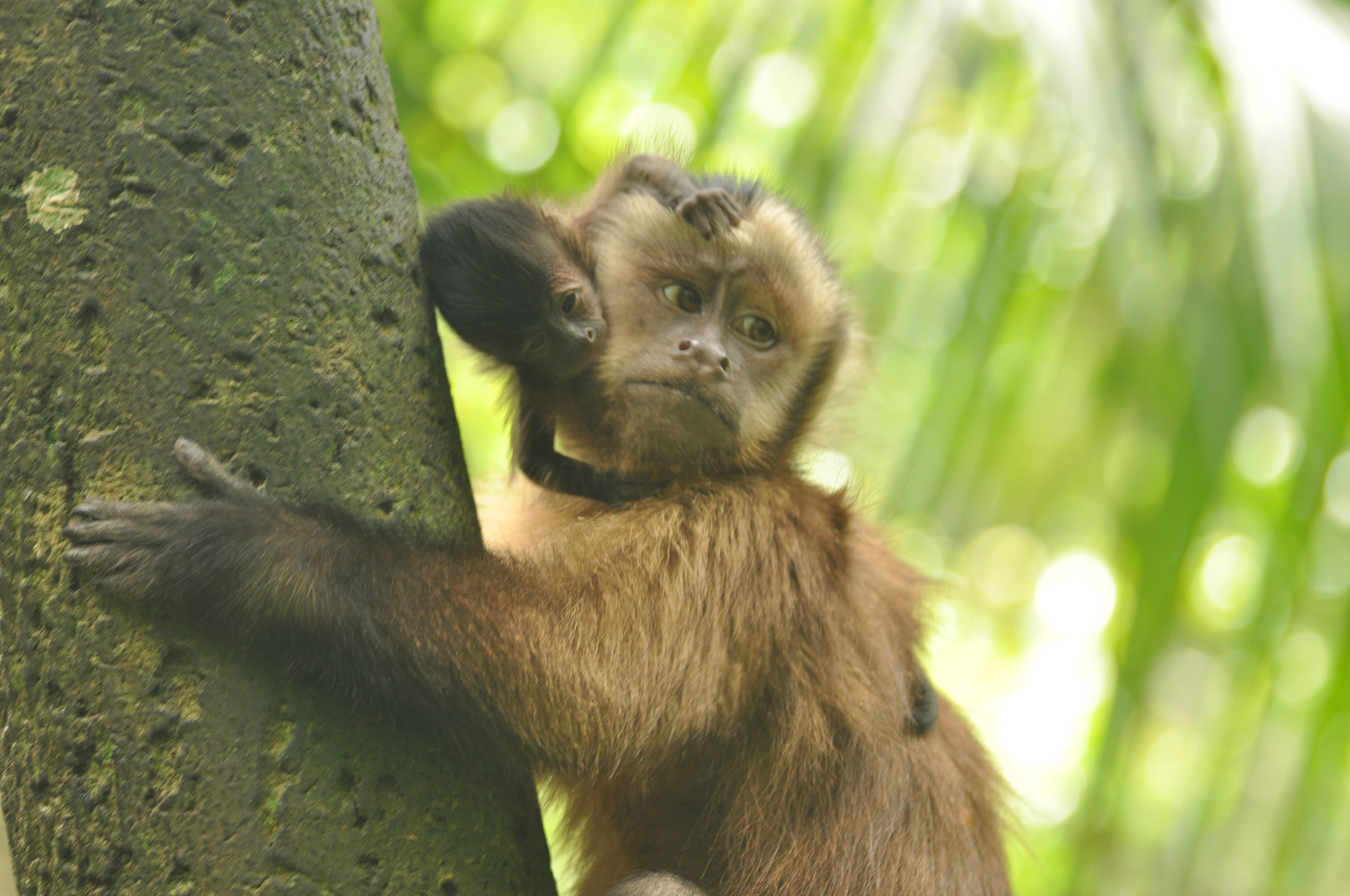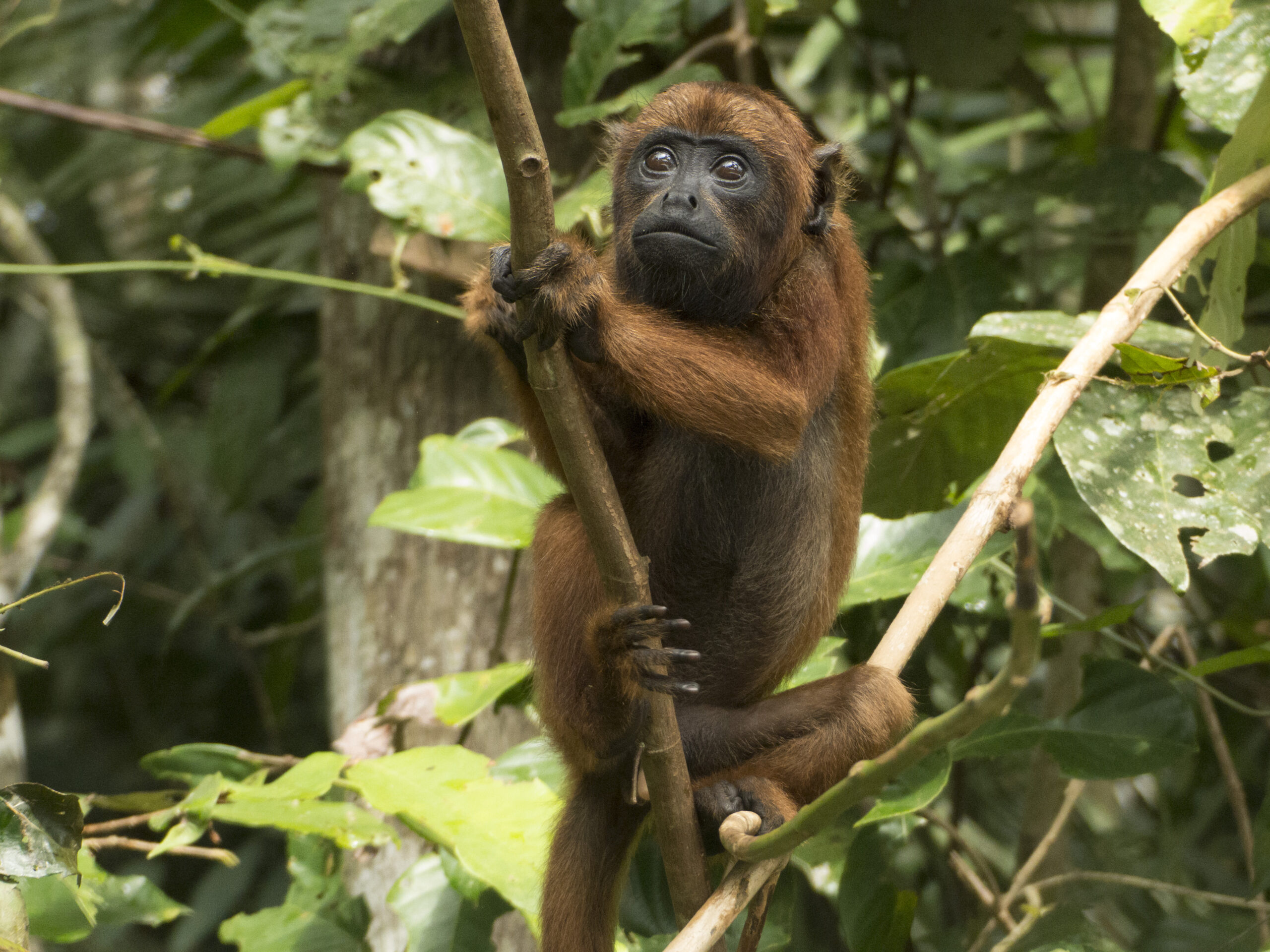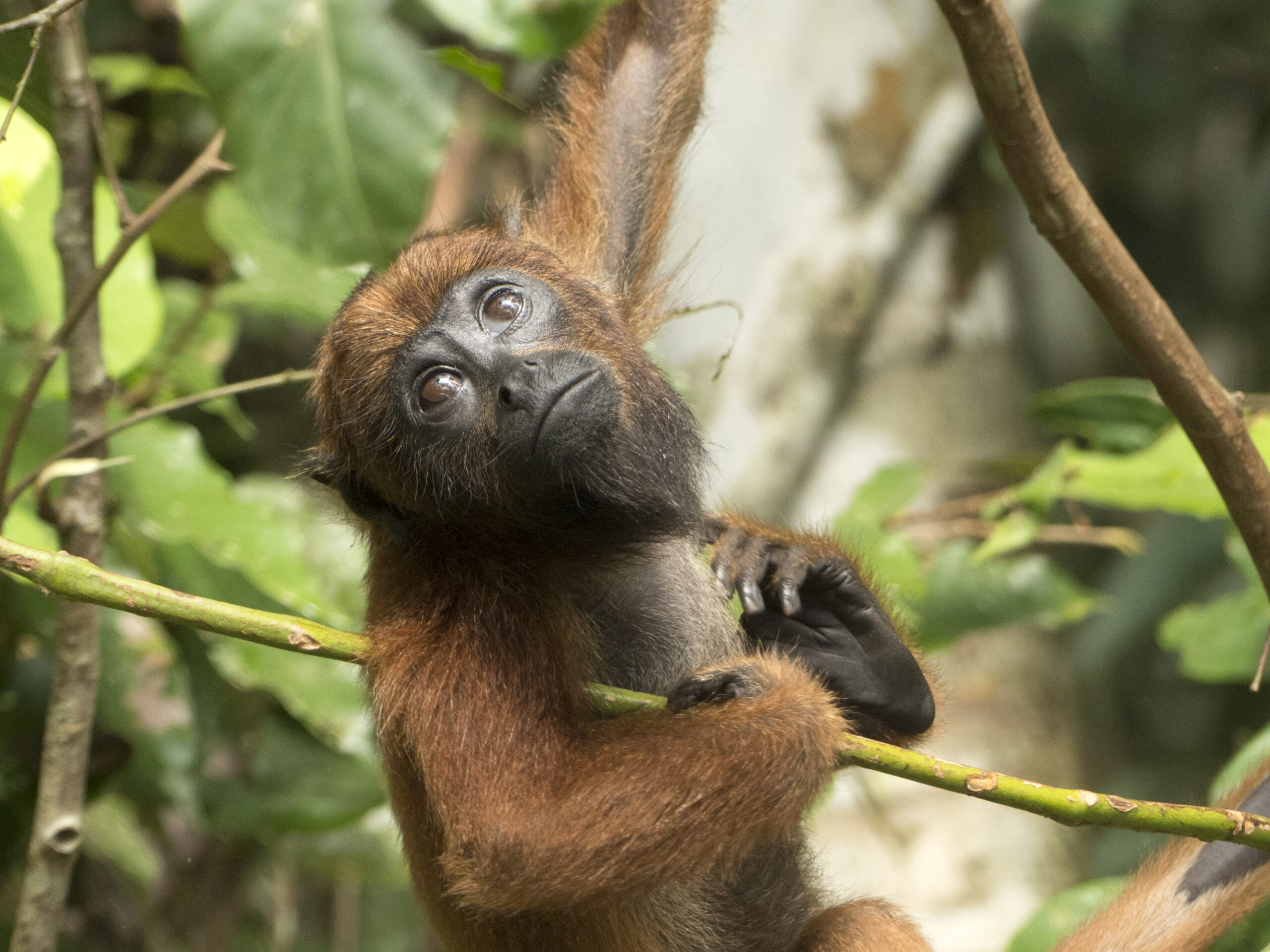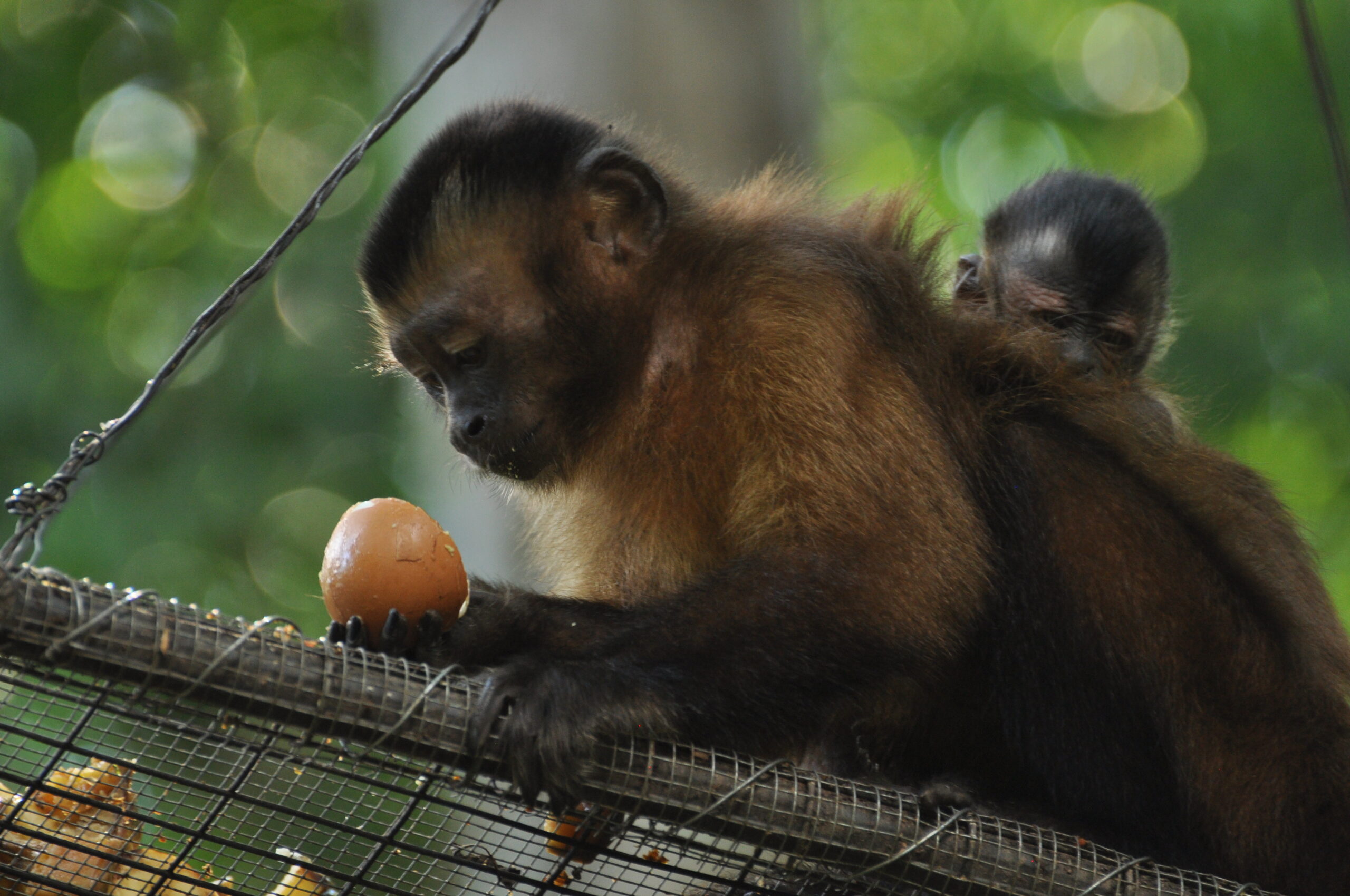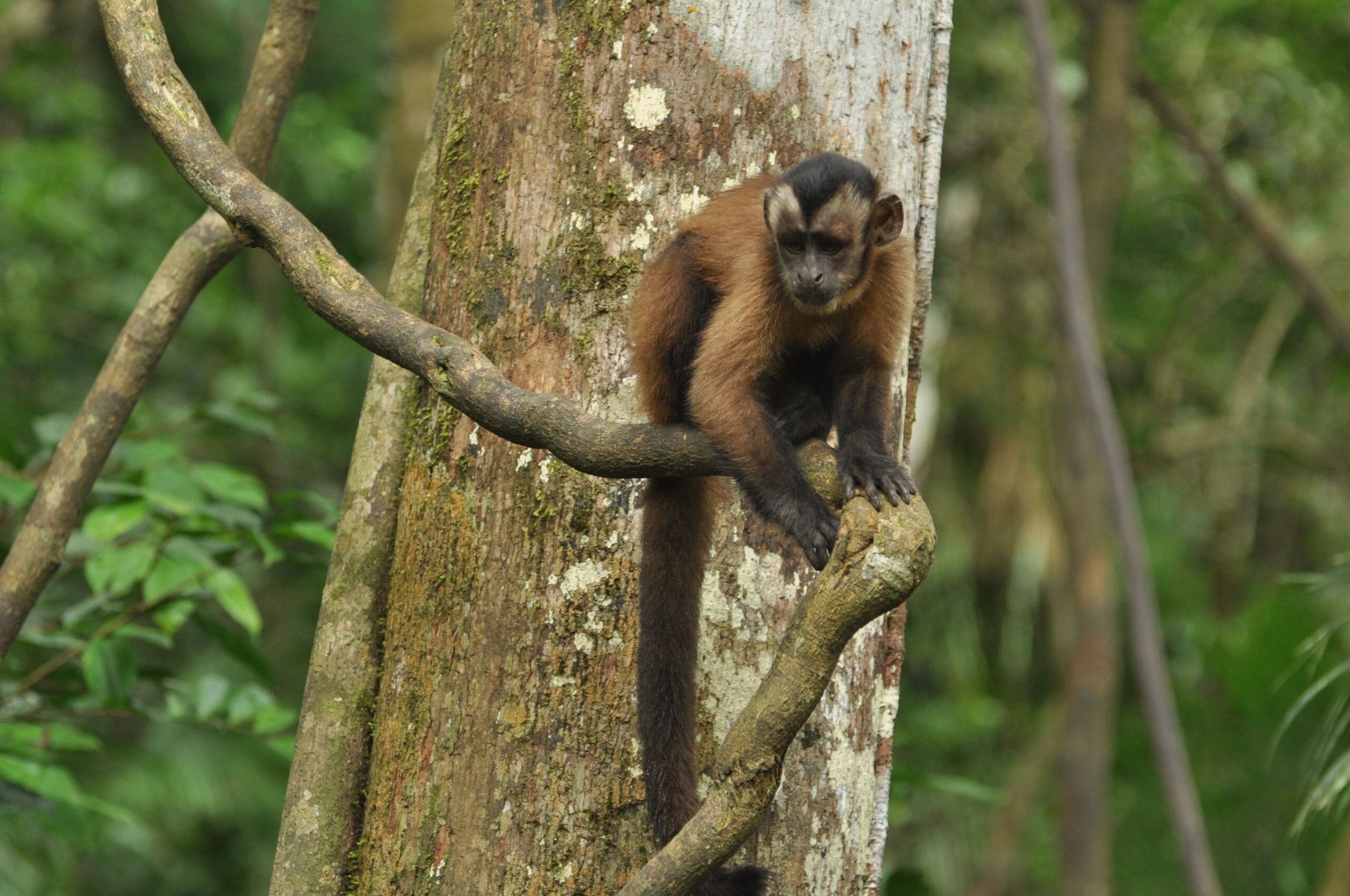 Panki (male woolly monkey) was released from the La Sapa enclosure this month and it has been interesting to see the growth in his personality and how comfortable he has become in such a short time. Loki had been showing a great deal of interest since Panki arrived, so when Panki was released, it was great to see the initial comfort Loki provided. Male Woolly monkeys often spend a great deal of time with the young and it is great to see Loki practicing his paternal skills.
