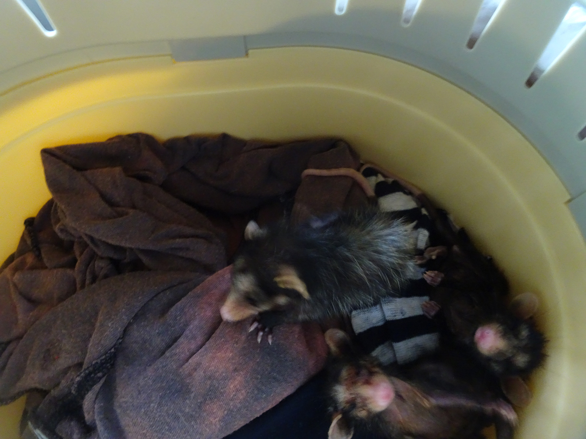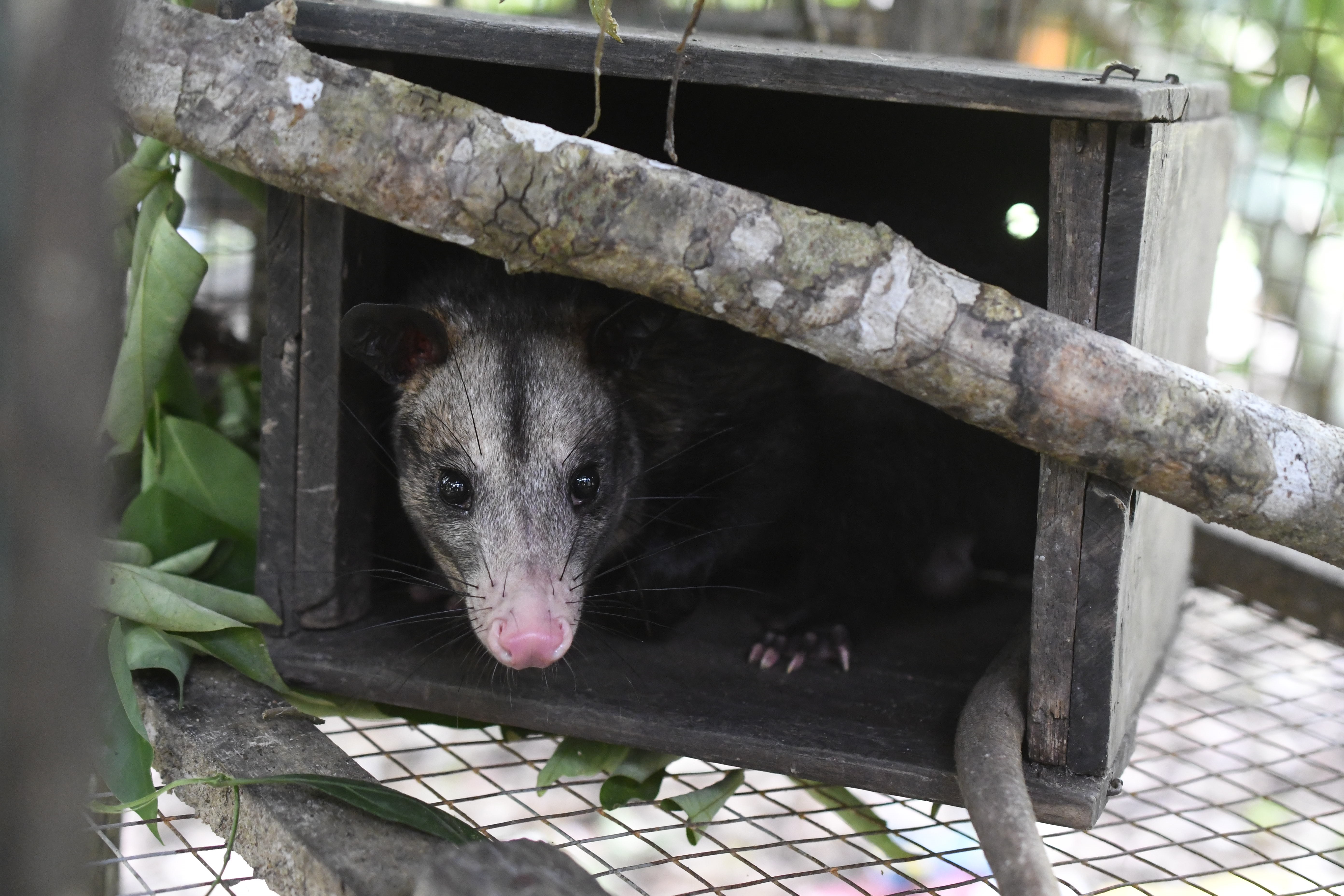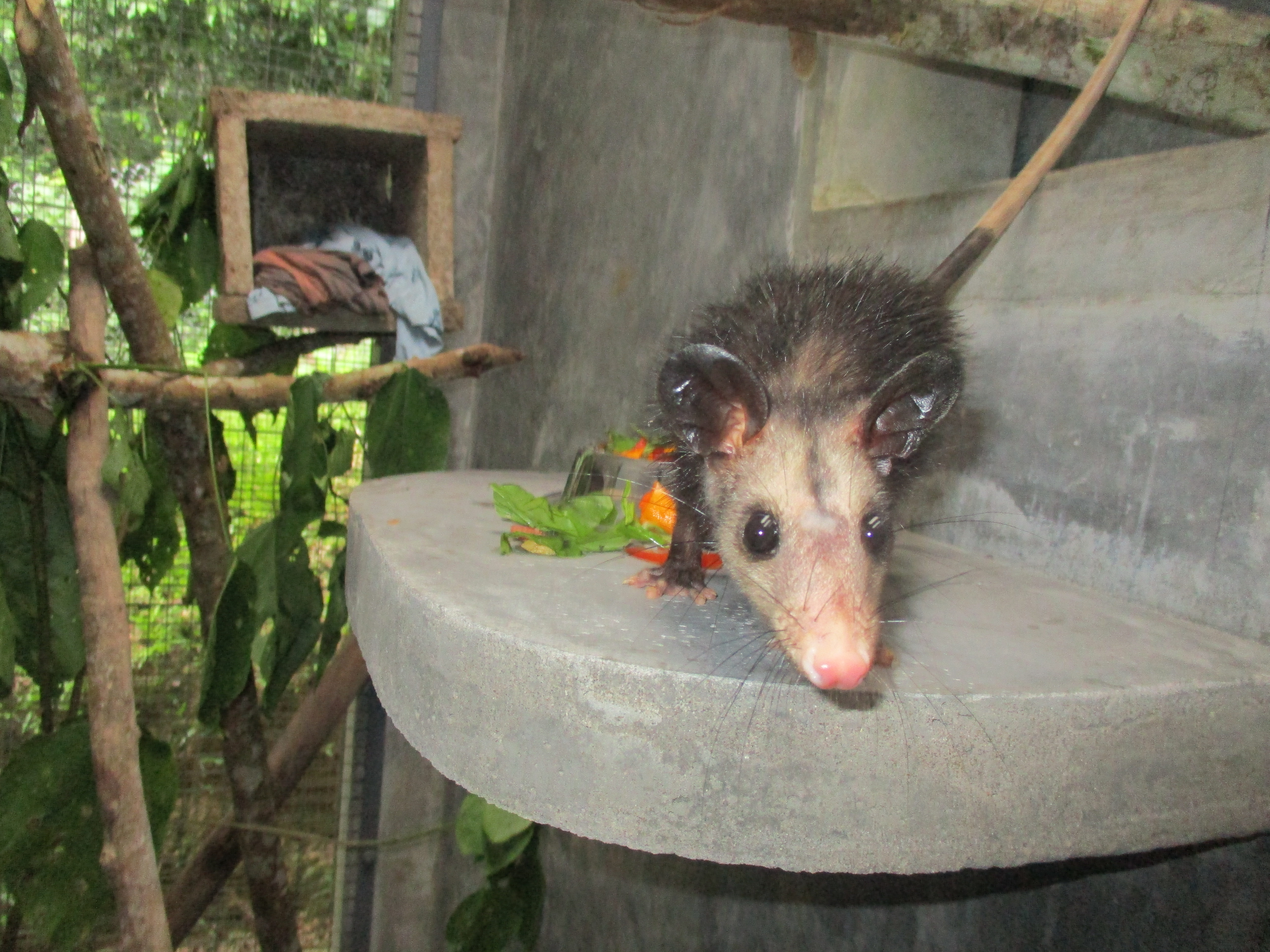 Aeris (female opossum) is the last remaining opossum of our group of opossums that were released on the upper plantation. Although her door remains open 24/7 it appears she is more than happy with the arrangements as they are. Let’s see if August proves the month where she leaves her safety net and moves into the great wide world.