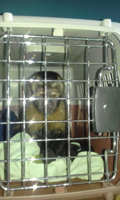 Leo (male squirrel monkey) had been spotted a few days prior to capture, with injuries on his face and one of his arms hanging limp. Thankfully with a small amount of encouragement, Craig, our long term volunteer, was able to lure him into a cage. It was evident he had encountered a larger male and come off second best, leaving him with very bad injuries on his left arm. He was moved to the clinic, where he now is receiving treatment and will stay until he is fully recovered.