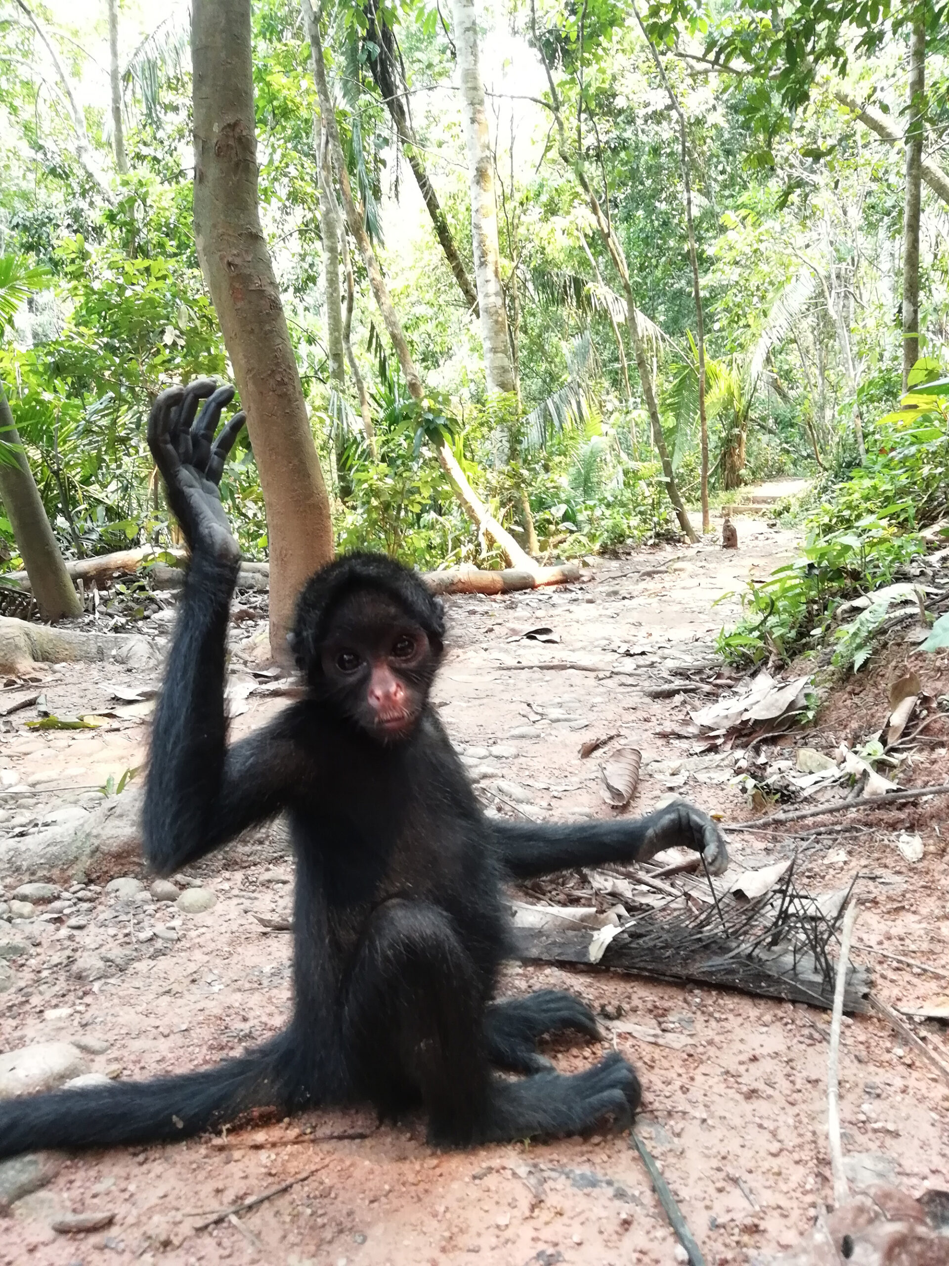 Loki has been going through a growth spurt, and if the extra bulk and muscle showing is anything to go by, he will become quite a formidable monkey in the years to come. With the volunteer changeovers that have happened recently, Loki had decided that this was a chance for him to move up in the hierarchy and had started trying to intimidate new volunteers and generally being far less cautious than he should be. Loki is so good with the baby monkeys, it would be a real shame to have him locked away. Rather than enclosing at this time we are hoping that with increased training and consistency on our part and by modifying our behaviour we hope that both Samara and Loki can have a long and fruitful time outside as enclosing animals is something we always try and avoid.
