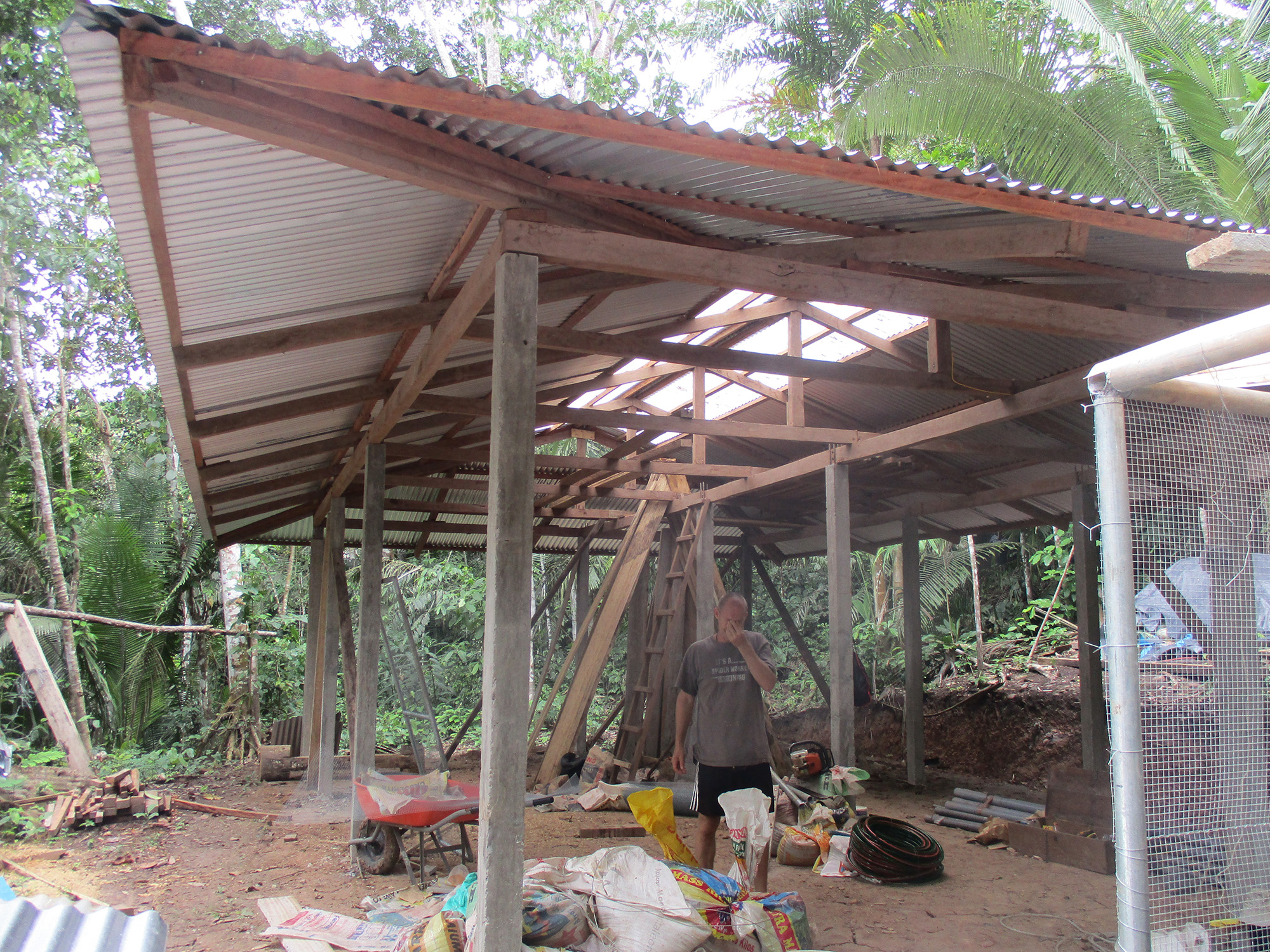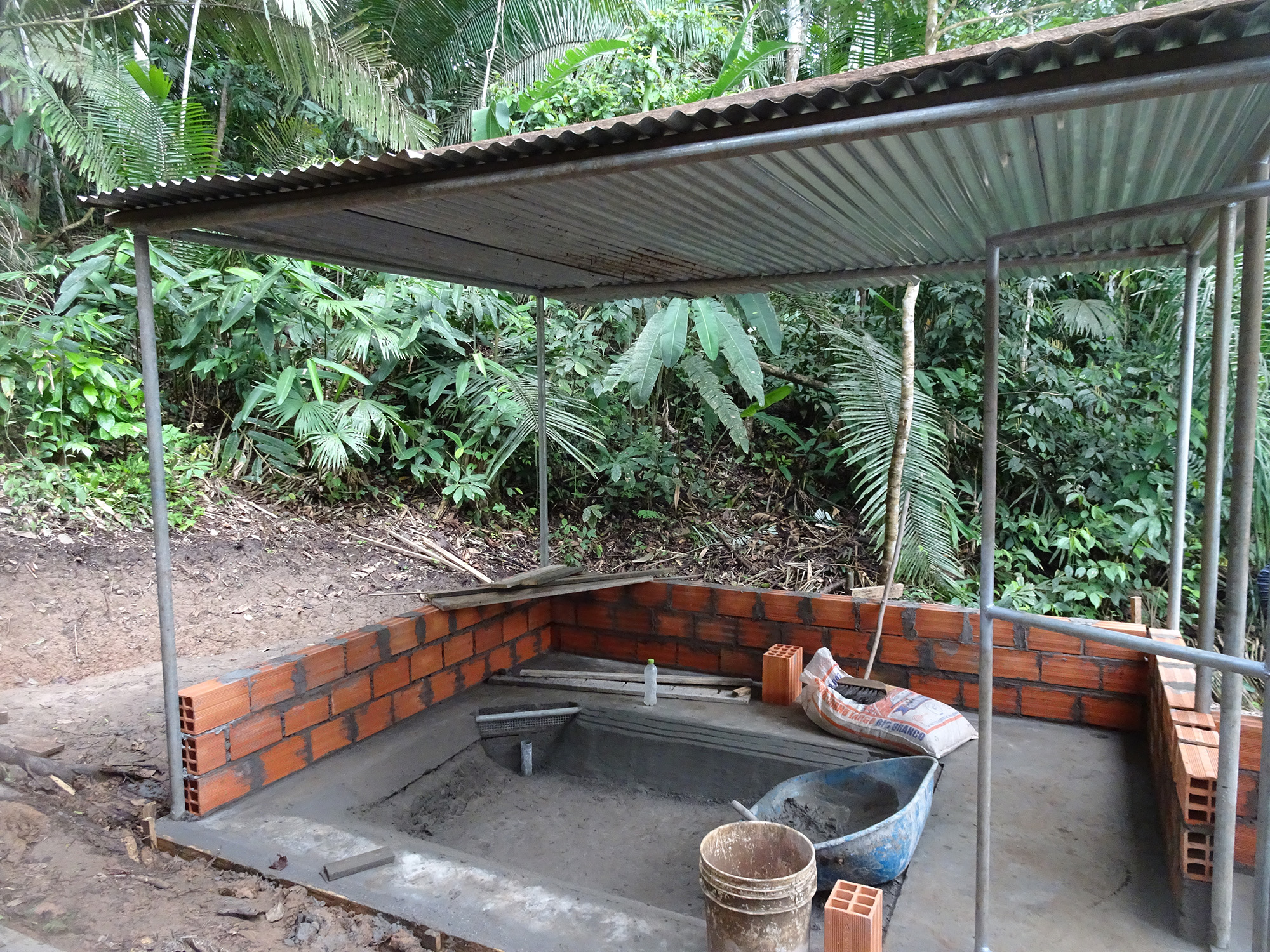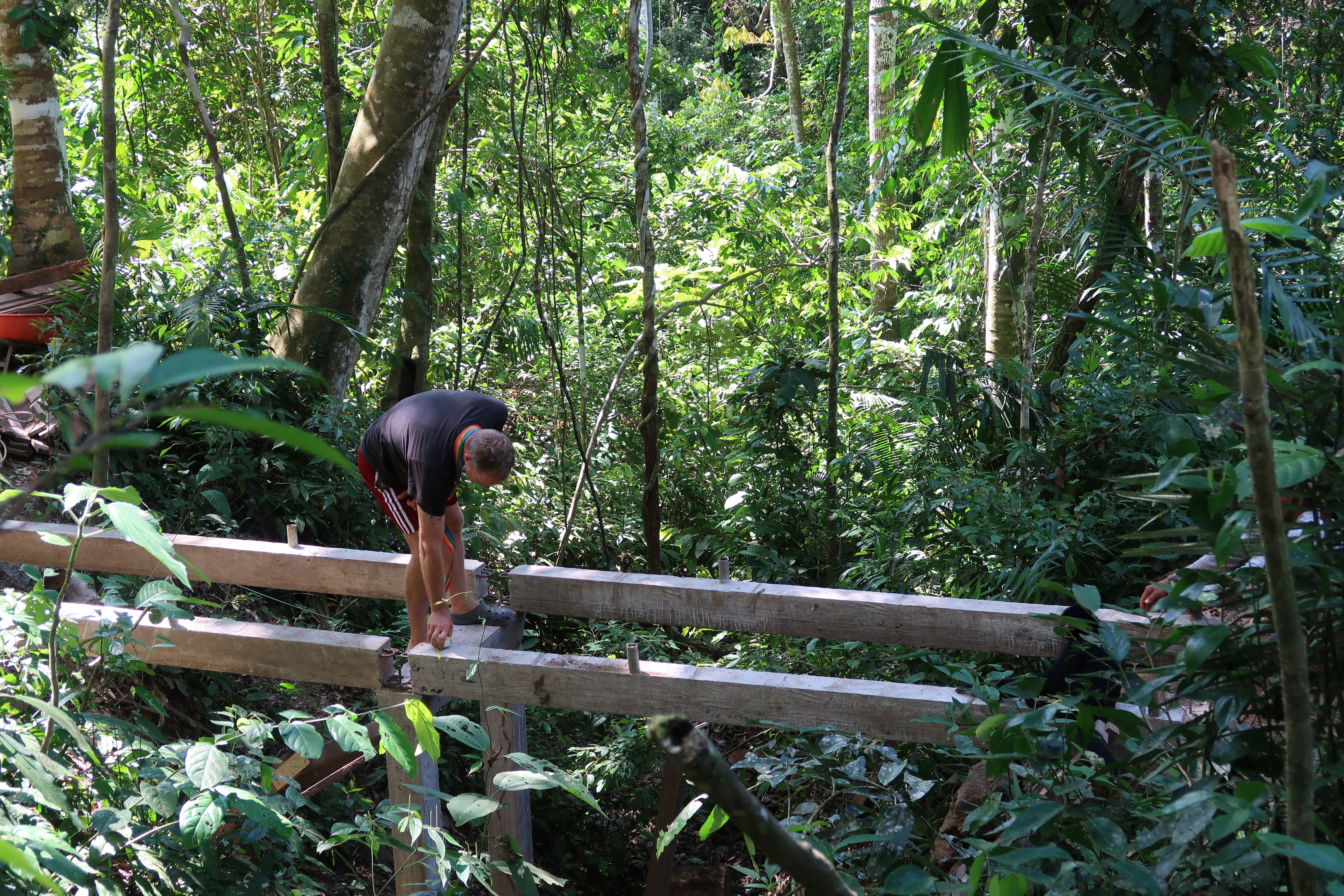 The new bridge between the bodega and volunteer kitchen had its vertical supports sunk during the month, with Geiler doing a remarkable job in what is not the easiest of areas to work in. These supports needed to dry for a few weeks before the beams constructed last month can be added to the equation. Douwe envisages this project being completed early August, so stayed tuned for pictures!