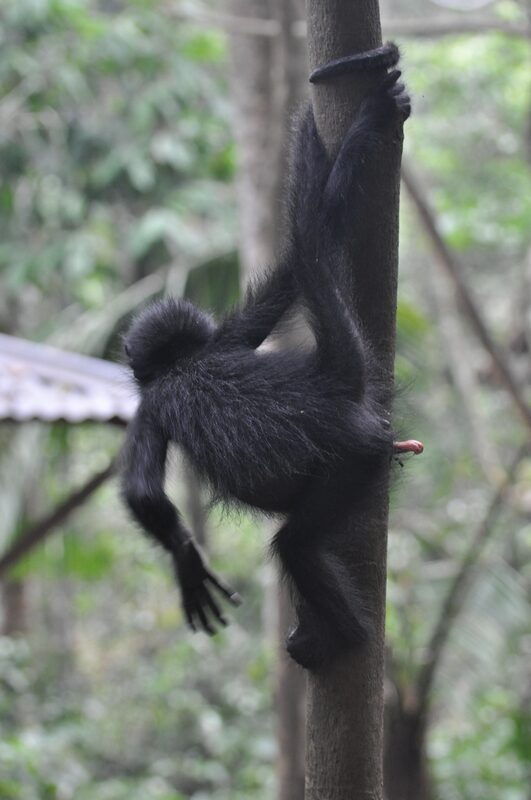 Two large cages were set up and then joined together in a tree in the plantation. After a week of getting comfortable with the new location, the doors were opened in the evenings. Initially Rubai was the only one to fully embrace the freedom and has not been seen since. Cia now disappears for a few days at a time and Aeris appears quite happy to come and go as she pleases, although she is always home for her evening meal, which is still diligently supplied by our team.
