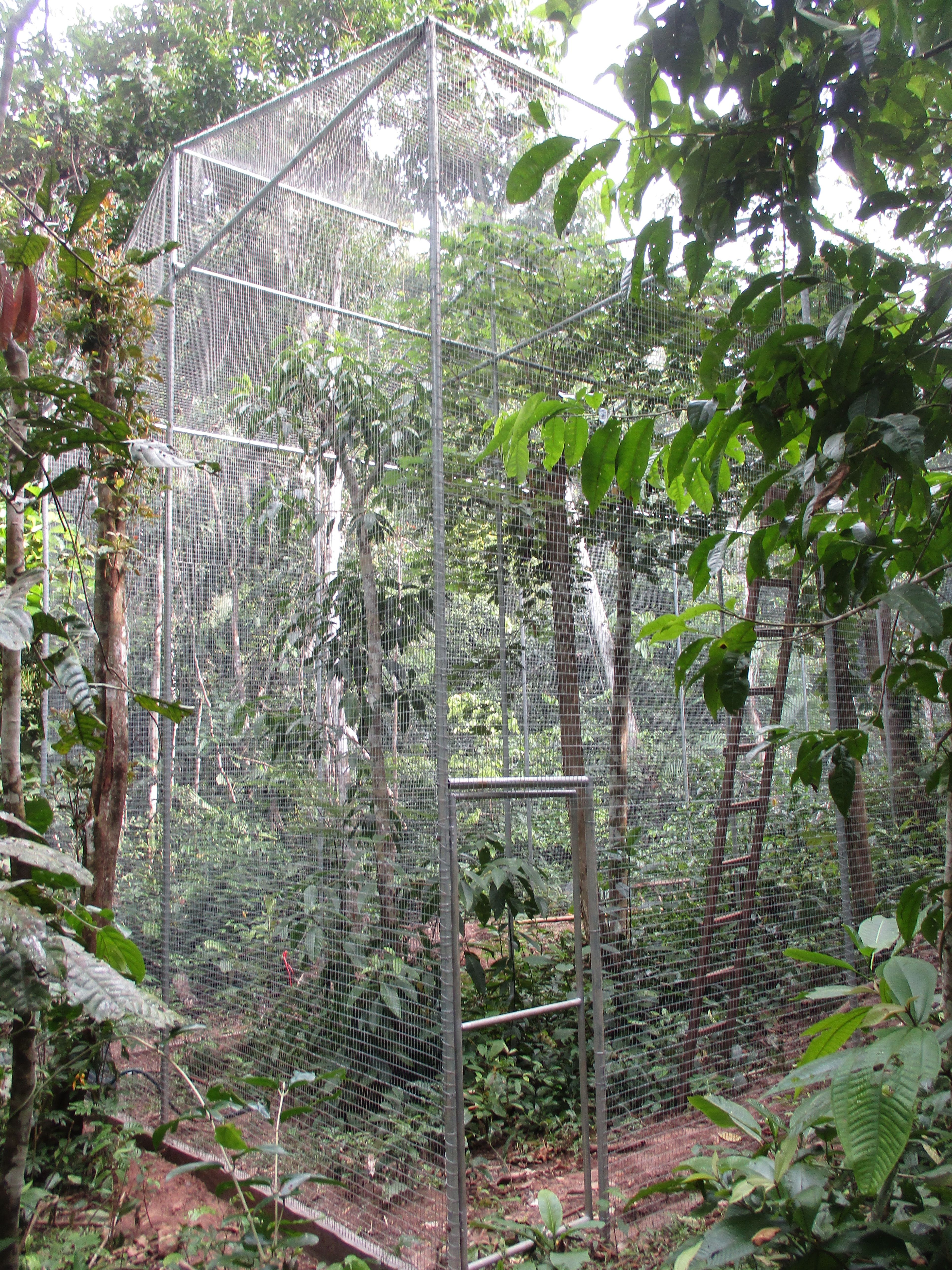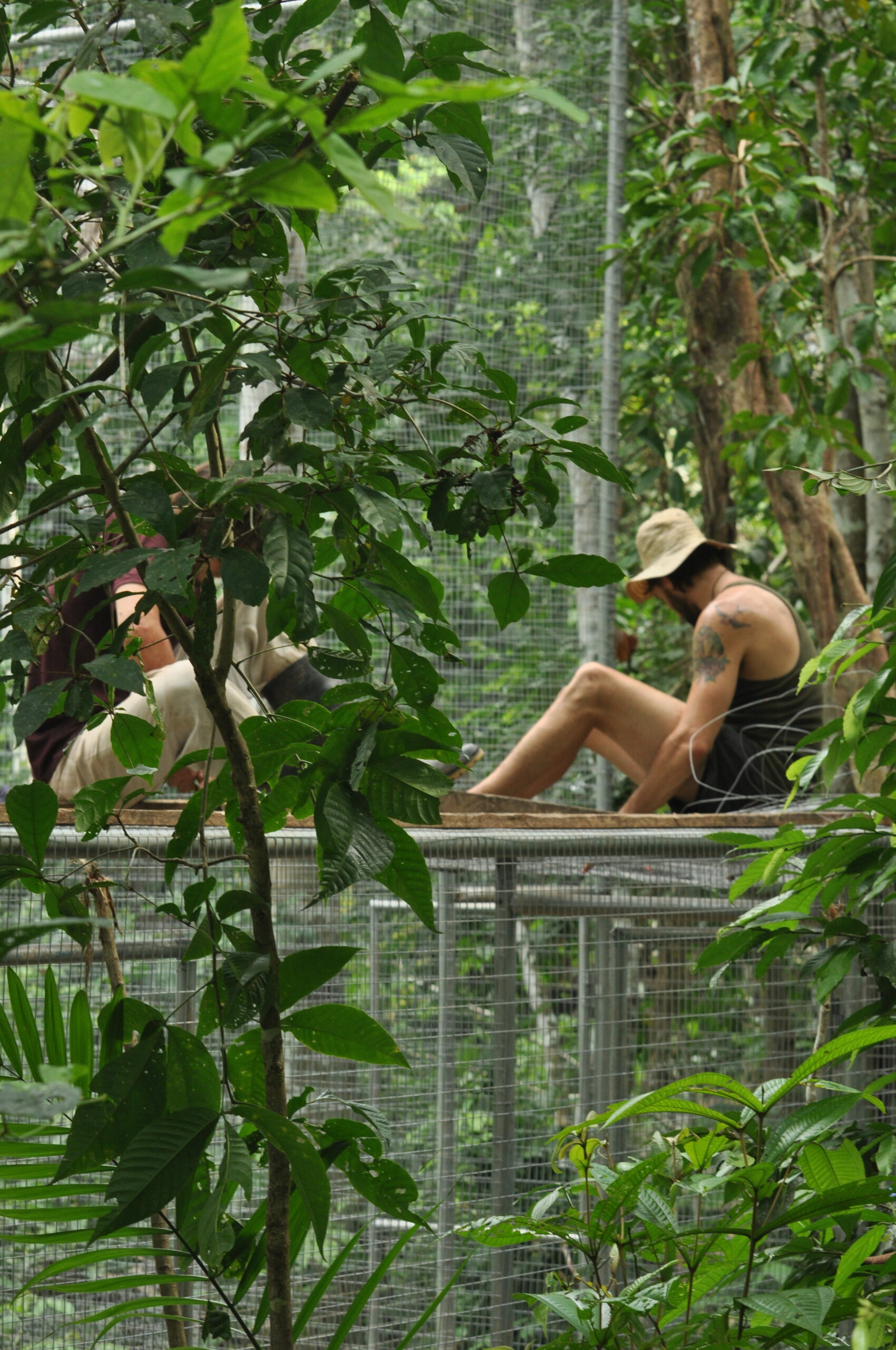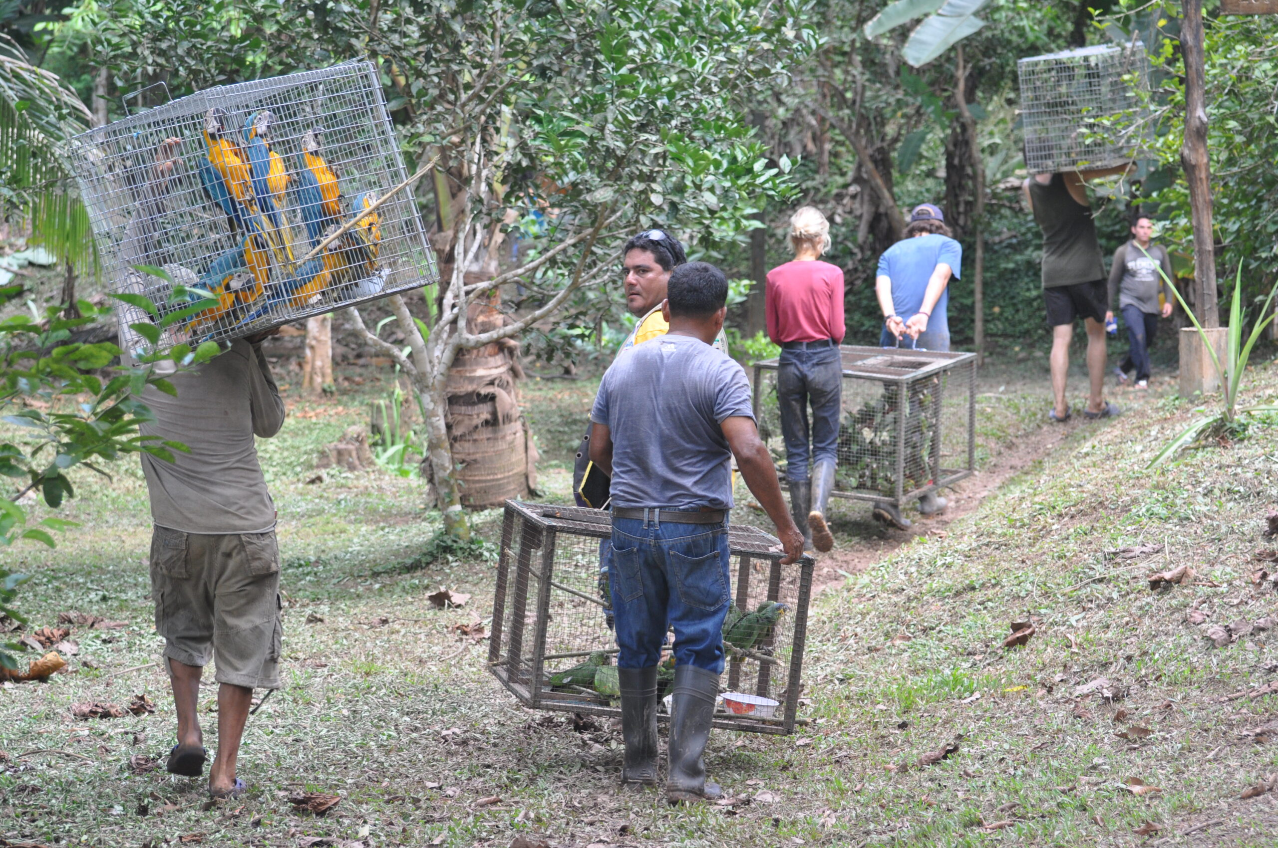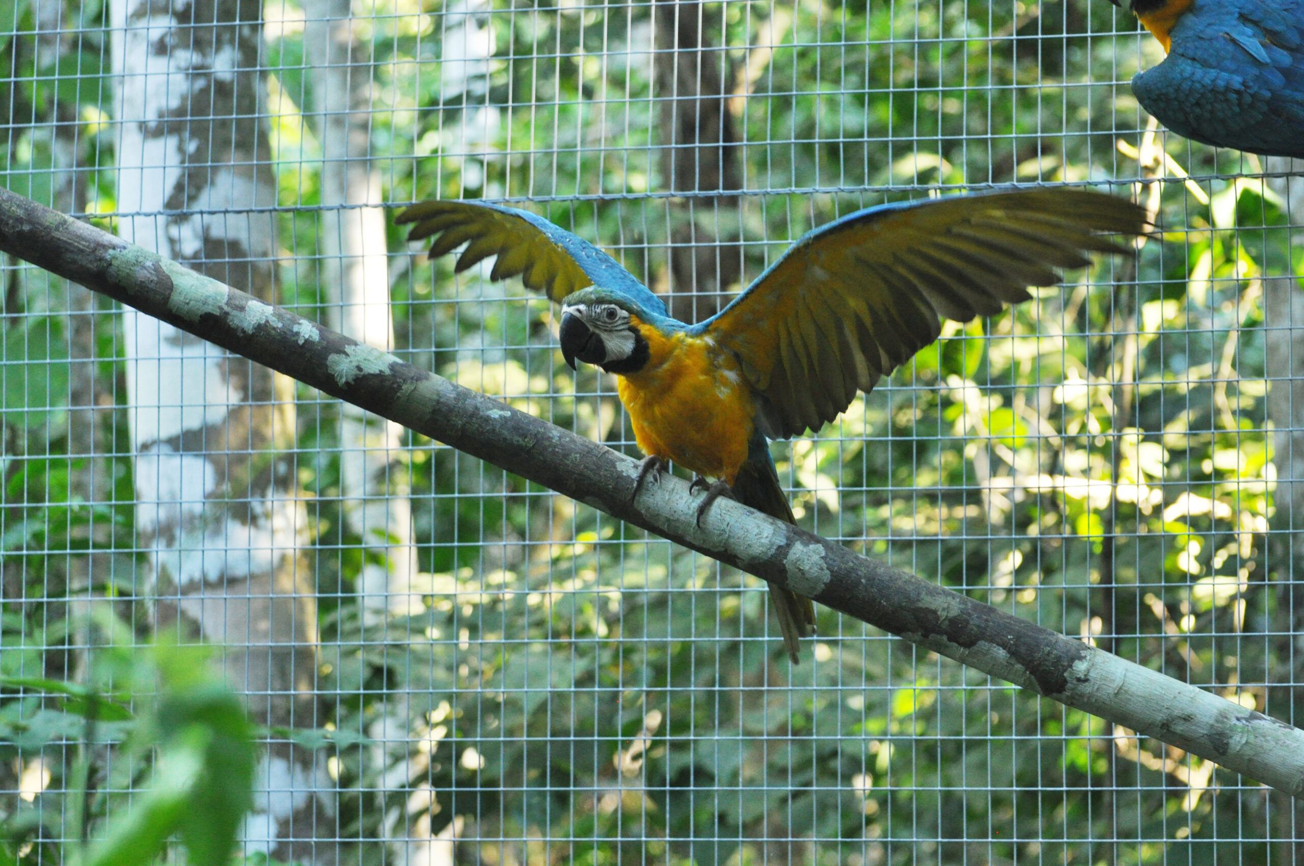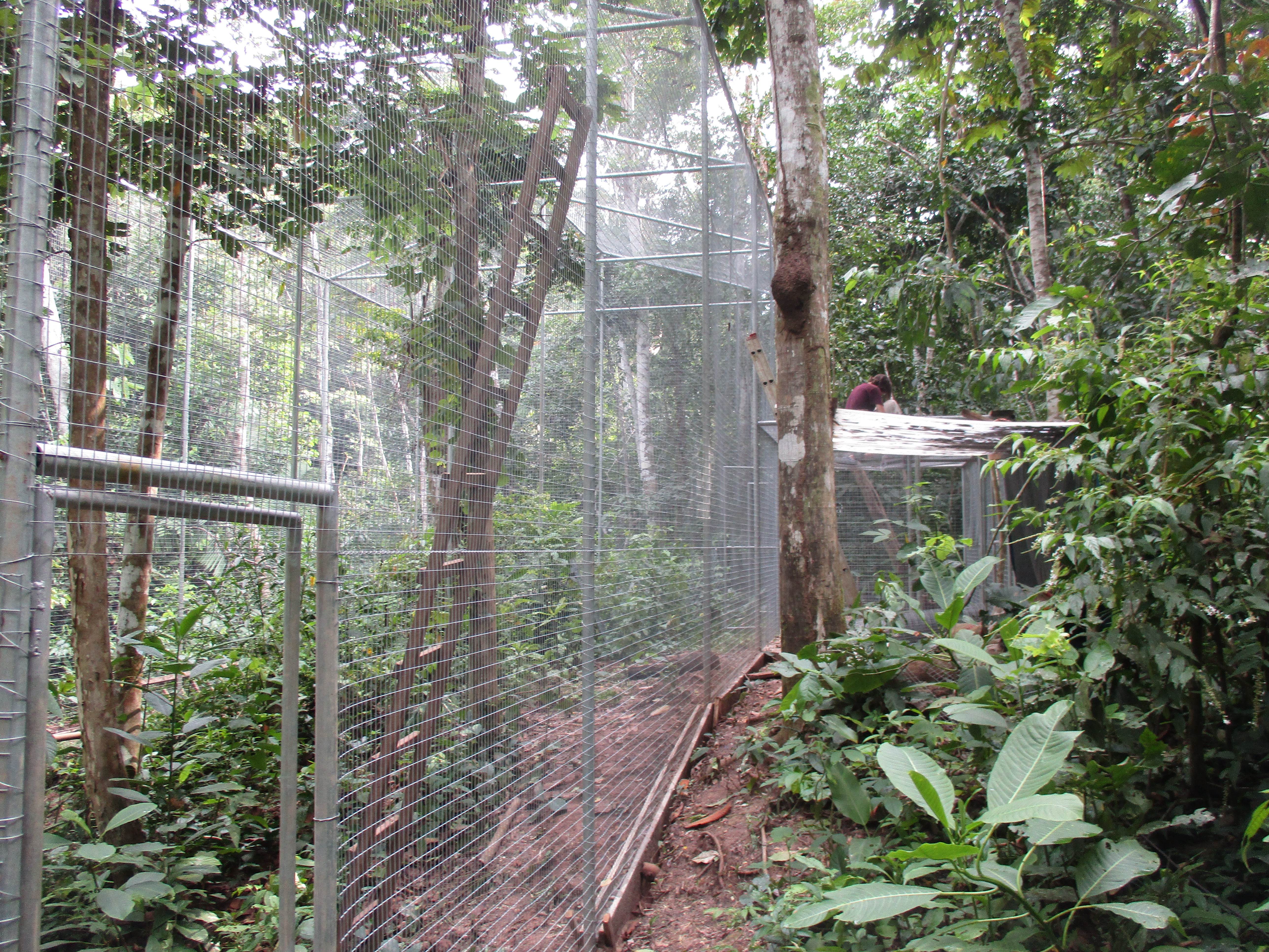 Rafiki (blue and yellow macaw) now has company. He was joined by an old friend from the Pichu (aviary) enclosure. At the start of the month Ermina (scarlett macaw) was found having suffered a fall, she is incapable of flight already, now had minor damage to a leg as well. After a brief stay in the SUST Orphan Animal Hospital, Ermina has now joined Rafiki as a permanent roommate. Both birds are benefiting from the private space where they can stretch their wings and recover, without the fear of falling from a great height or being grabbed by the other maccaws.