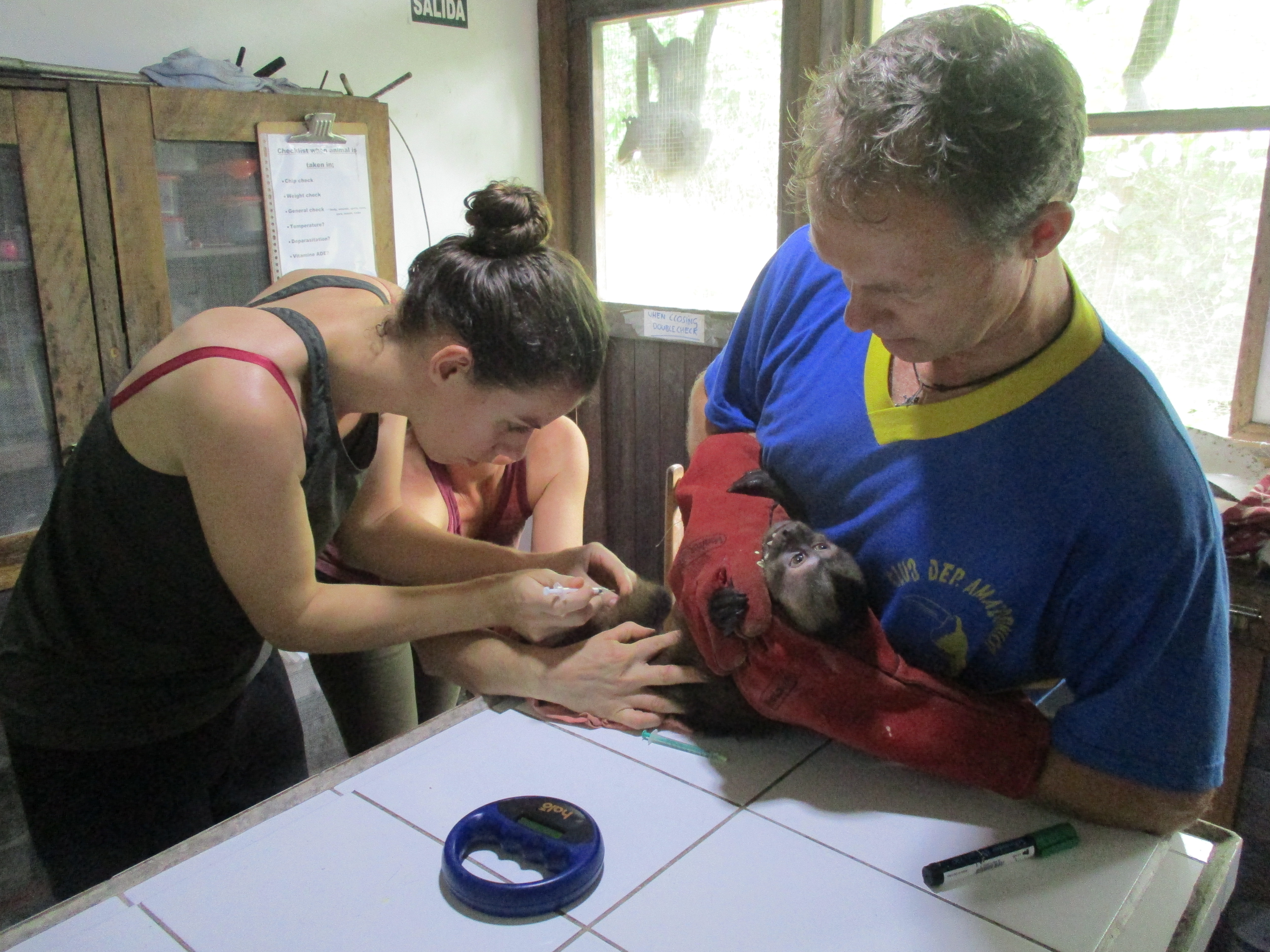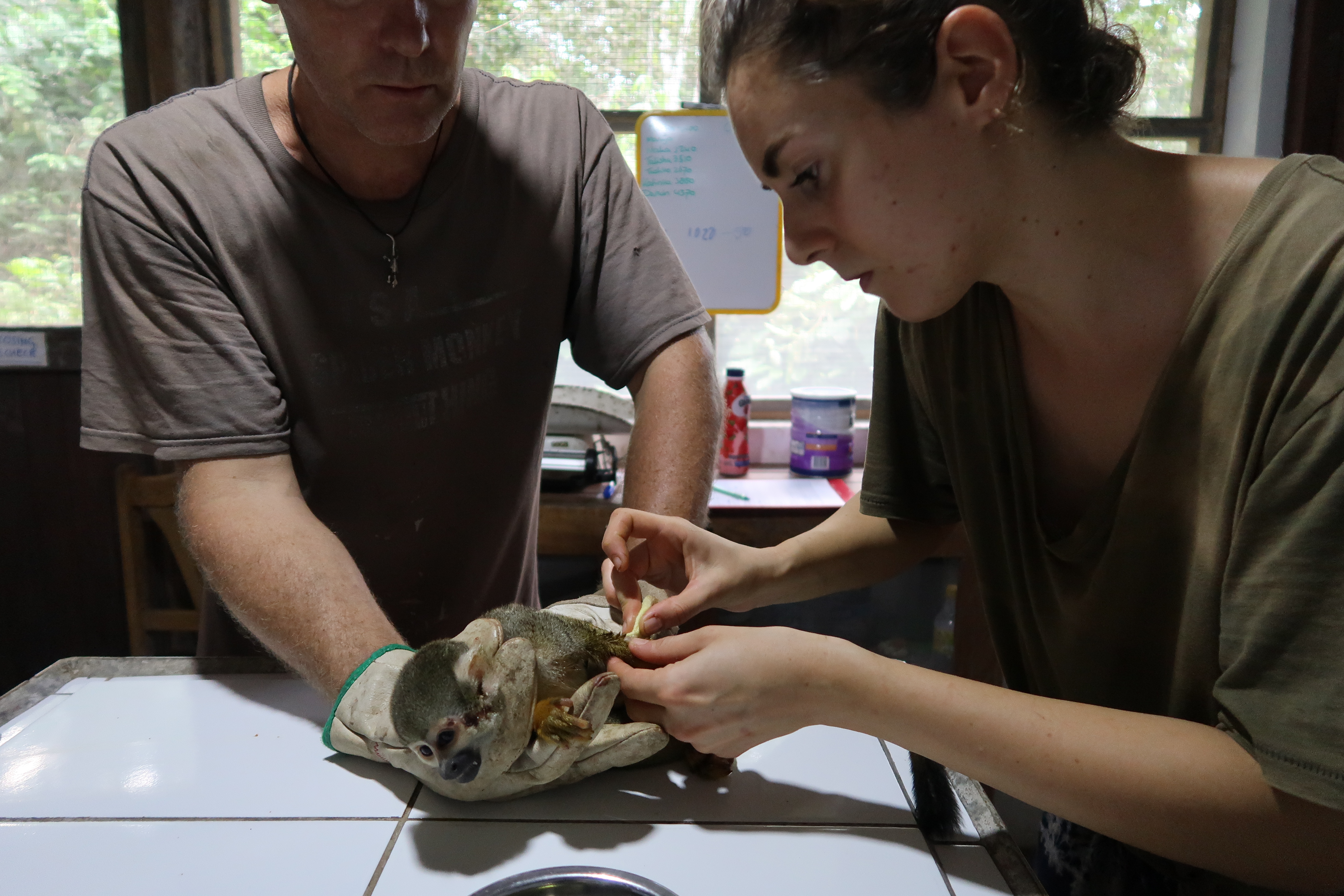 So few new animals until the end of the month was a welcome reprieve which allowed volunteers and staff more time to focus on the needs of the current clinic animals and any new issues as they arose. Just as the clinic seemed to go for a quiet period, a new arrival and an injured squirrel monkey needed some help.