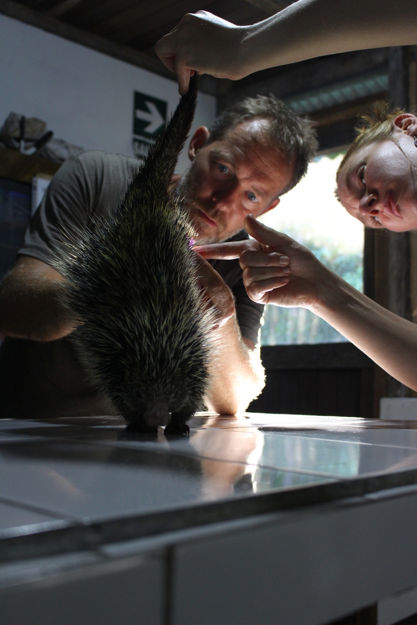 Among all the arrivals there was also a three toed sloth. After a health check he was released. He was caught out of the wild only a day ago, taken before people would kill him. Douwe took it down to the river with all the volunteers and family at the end of the night for it to be released.