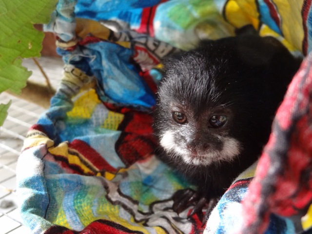 Tommi, Aritha and Inka, 1 squirrel monkey and 2 tamarins, all came with strings wrapped around there waist, all were extremely scared at first. However now they all enjoy causing mischief while people are trying to clean their enclosure. Tommi (male squirrel monkey) is still juvenile. Aritha is an adult tamarin and Inka is still a youngster.