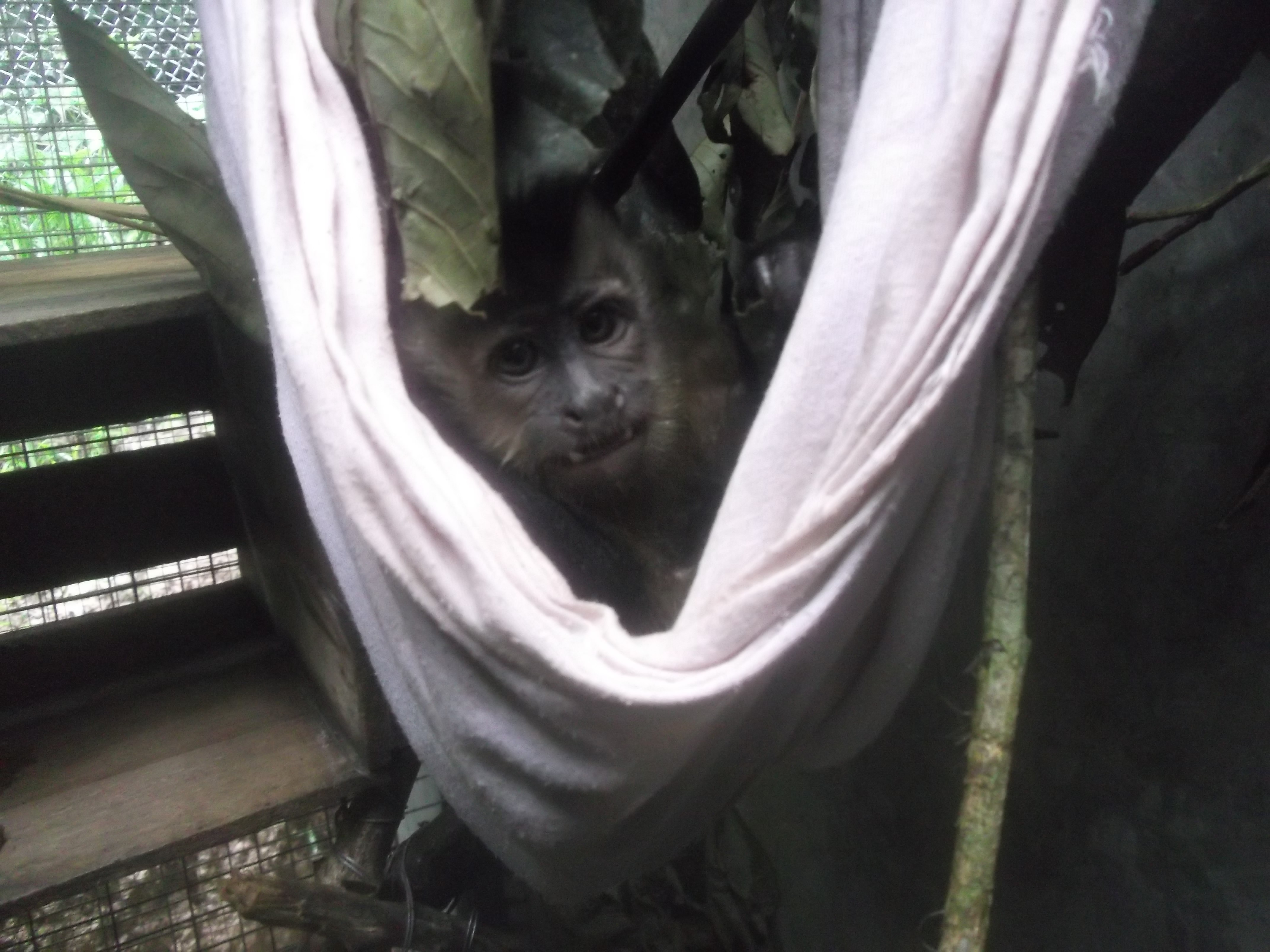 – 8 Brown capuchins (Cebus apella), 7 females (Rioma, Tisha, Lia, Selma, Mayantu, Kres, Kurima), 1 male (Capu). Except for Selma, who dissapeared after release and Mayantu, who is a baby and thus still under intensive care, the rest is together with the rest of the monkeys outside.