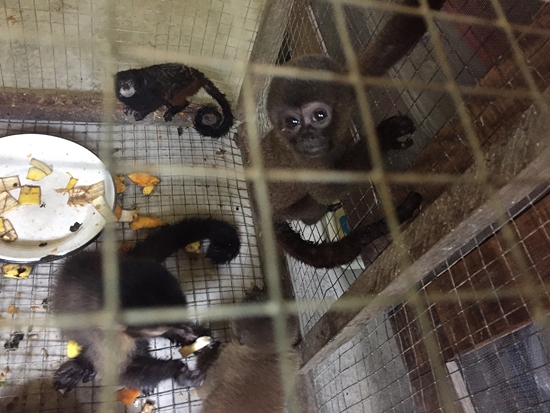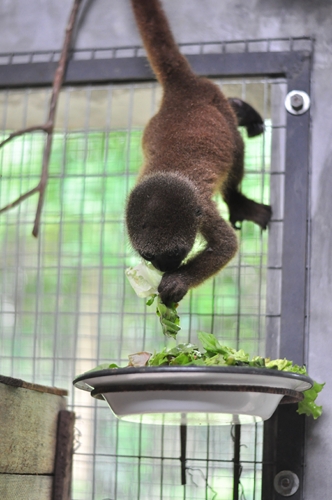 – 6 Common woolly monkeys (Lagotrix lagotricha), 3 females (Uma, Maruja, Naka), 3 males (Loki, Monano, Tawaki). Tawaki and Naka are still in an outside cage, while the rest already joined the outside group.