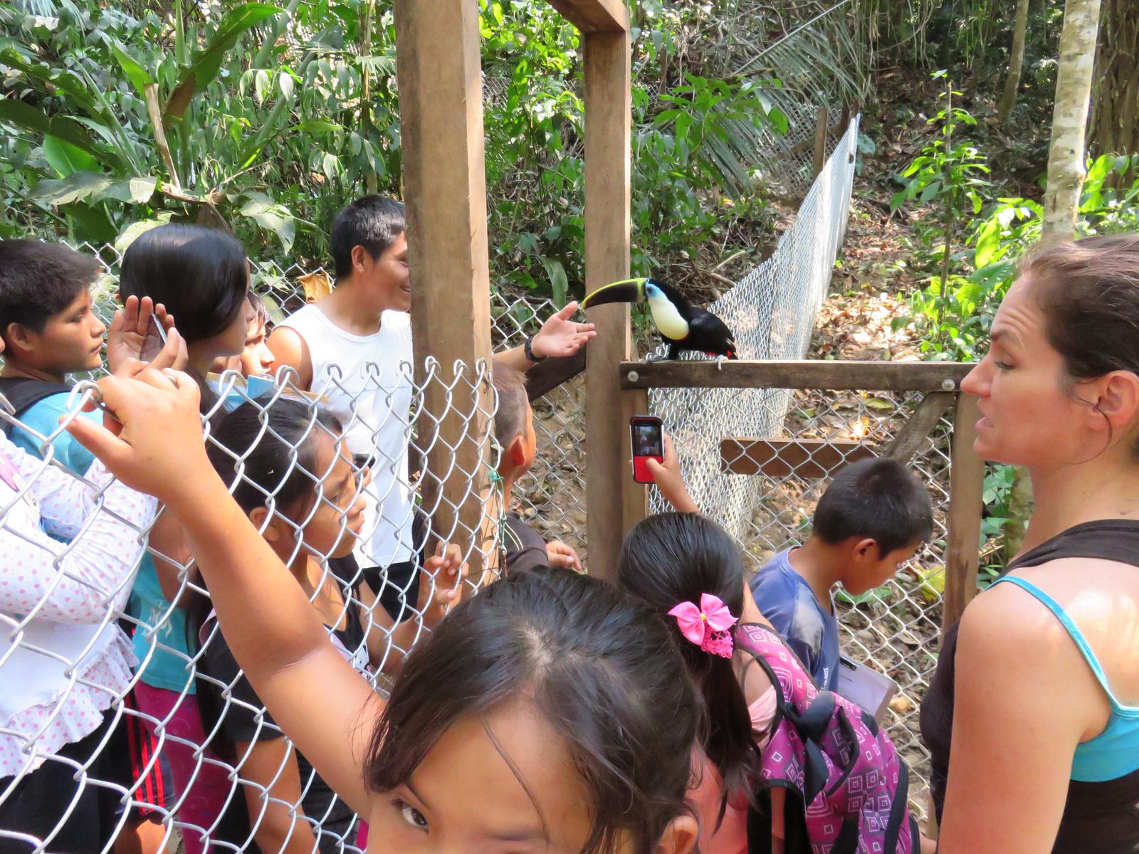 Yanay (female spider monkey) is living with all the other monkeys now freely in the Esperanza Verde range. She is fully independent, but still loves to be around humans as well. Sometimes when you sit outside the kitchen she just sits at your side giving you company. The no touching policy is still active though and it helps them all to eventually spend more time in the trees, which of course is more healthy in many ways.