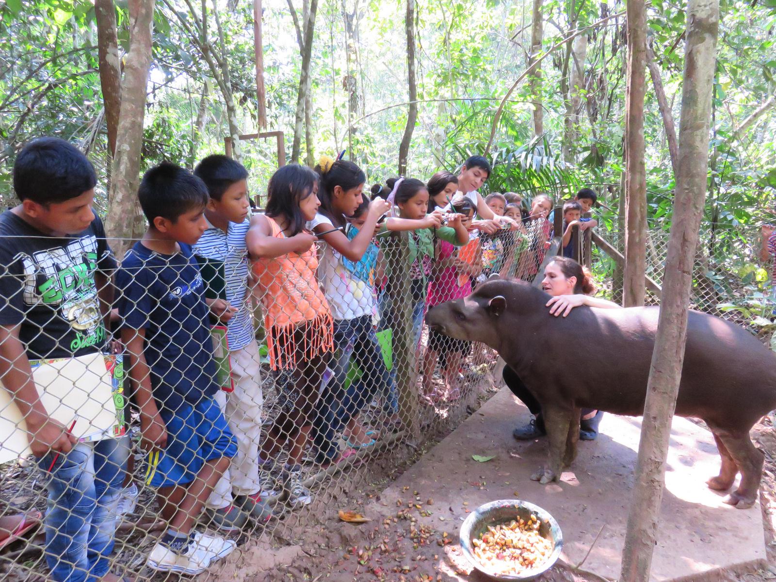 Rincay (male tapir) really likes the female volunteers! He follows them around everywhere, to a point where some of them get a bit annoyed. Once he escaped into the front cage, but they lured him back with a clever strategy and lots of food.