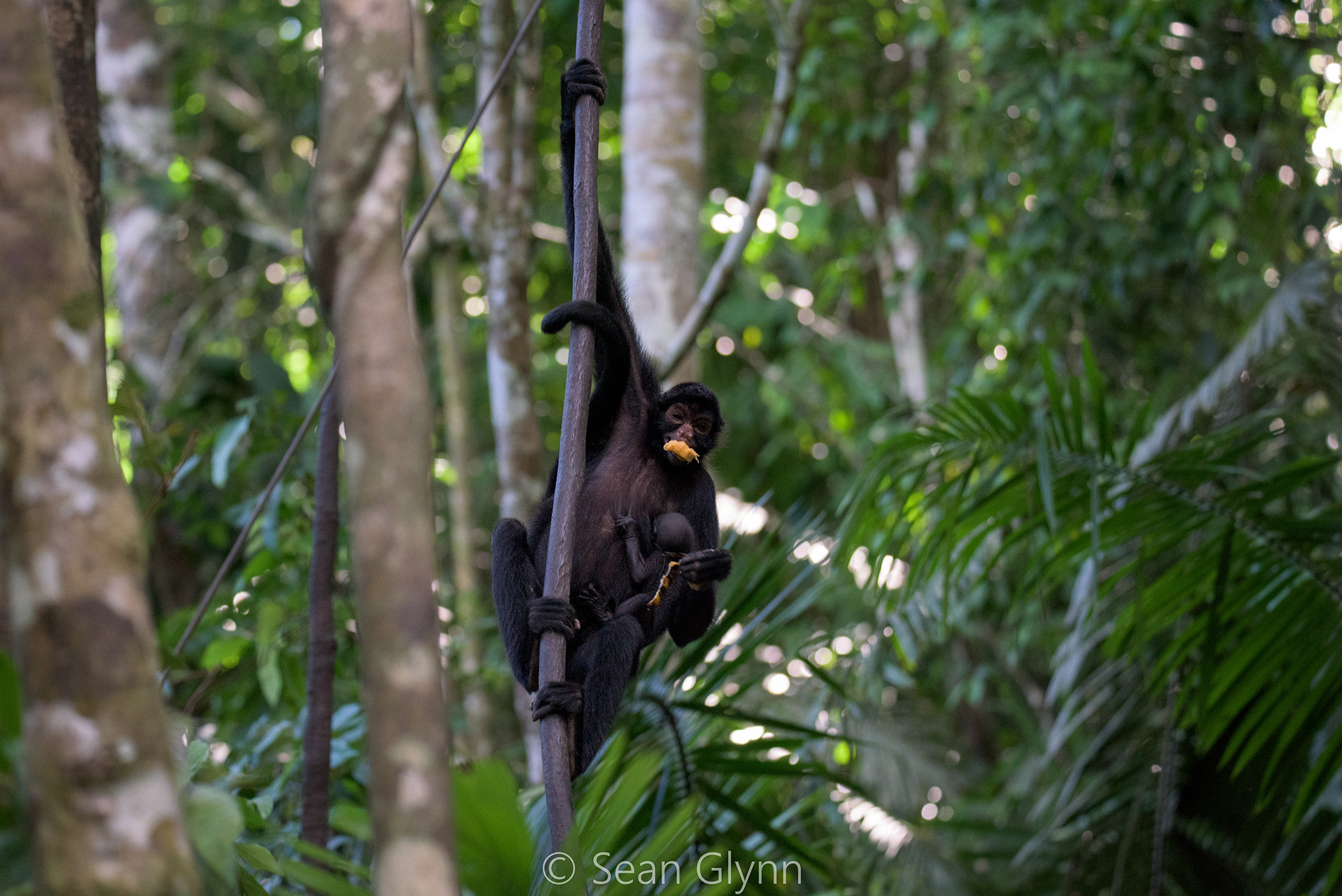 Last month we saw Nera give birth to her second baby Nawi. They are seen a lot and are doing very well with the group of capuchins which is continuing to go further away for longer periods of time with the lead of the wild male Macu.