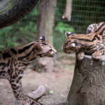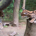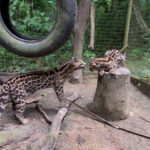 Diego (young male margay) has been cared for by the family at their house for several months. As Diego will never have a chance for release, being raised from so young by humans, it was important to socialize him sufficiently with humans and offering him enough space for growth. This month we decided to introduce him to Grety, the female margay in Zambo cage. Introduction of animals can be problematic; however, Grety was accepting of Diego and their initial introduction was successful. The introduction was a slow process with a period in which Diego was in 1 part of the Zambo cage while Grety was in the other compartment of the cage. After that, they were introduced to each other in the same cage, spending a few hours together each day supervised by Douwe and volunteers to ensure that the introduction went well. They now spend longer periods of time unsupervised and seem to be settling in well together. Till we have built new enclosure to give them more space, we will leave them together during the day while being separated at night.