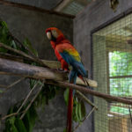 Delta (orange winged amazon) was moved into Igor cage after her quarantine period in the clinic. There she met with Sayani, the orange winged amazon with only one functioning eye, and they seem to have found friendship as you will see them sitting next to each other most of the time.