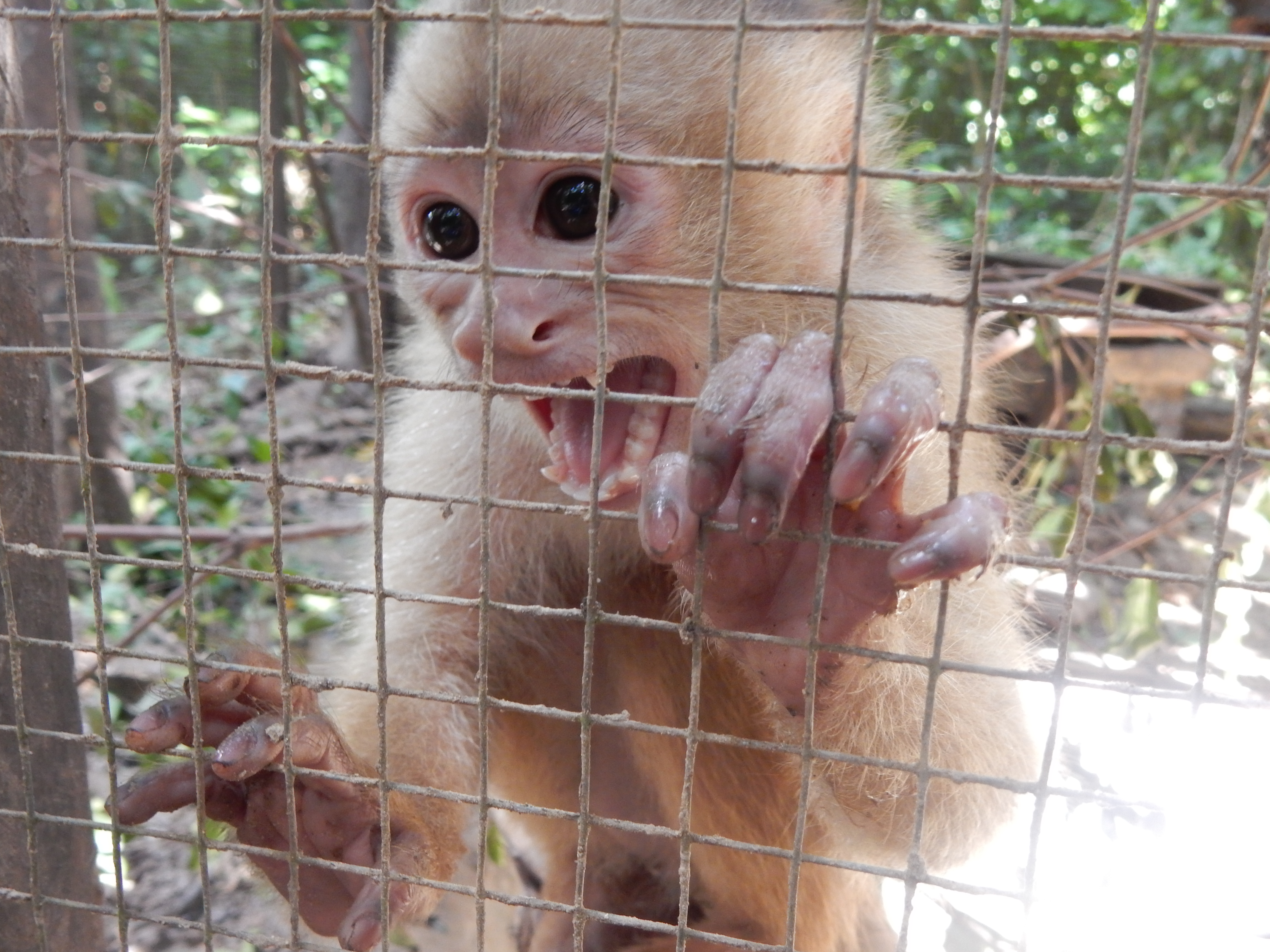 The last couple of weeks have been difficult for our babies. Recently the volunteers have been in the slow but steady process of distancing ourselves from the babies (a sad but necessary task!) This, on the whole, has been going very well, with the monkeys often happy to play amongst themselves or with the older monkeys, while always keeping an eye on them Khali, being the youngest of the three, is perhaps a little less independent, but this is likely to come with age.