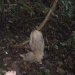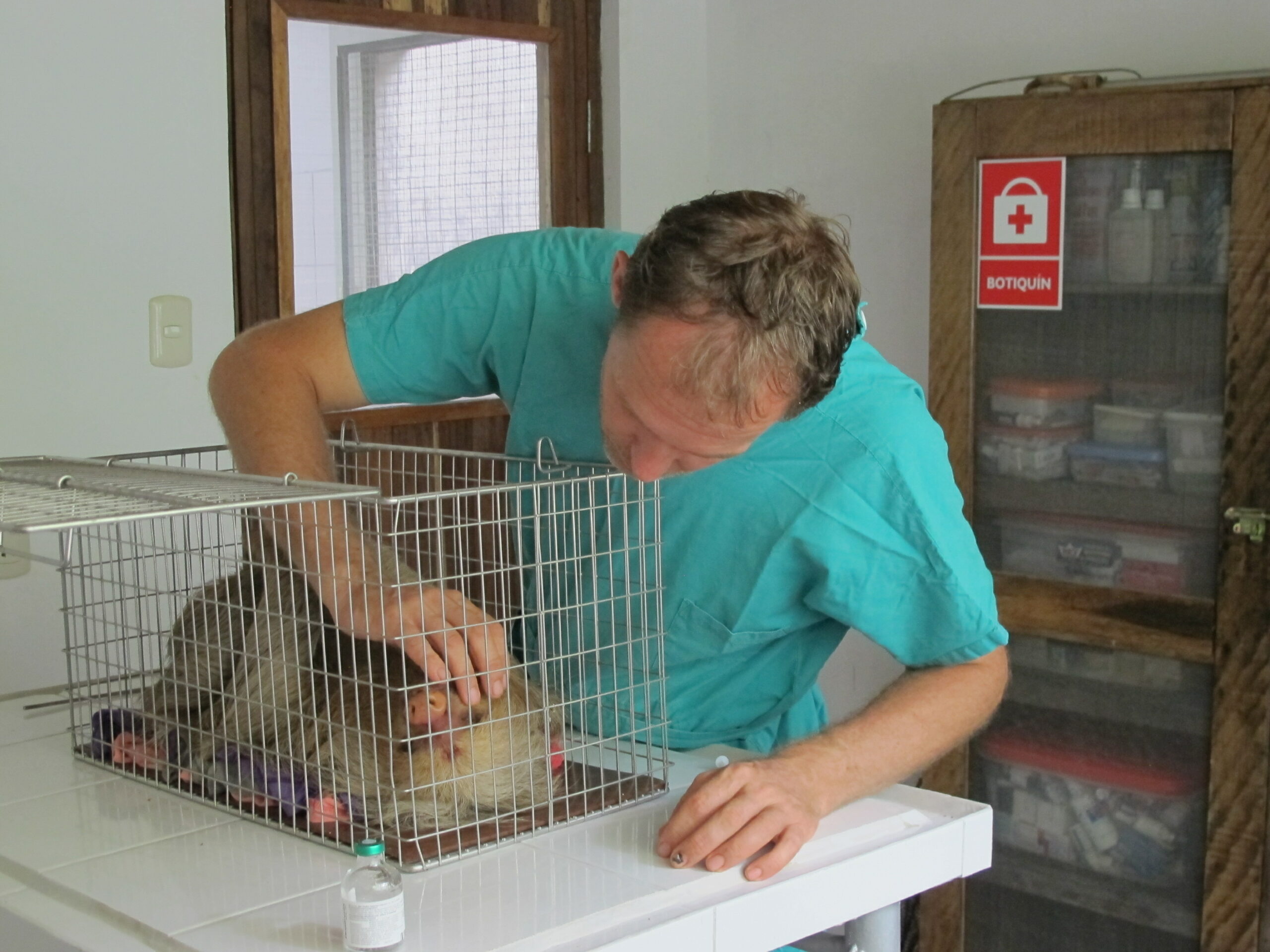 The recently released kinkajou, being nocturnal, is not an often seen animal. Often the only sign of his presence is the mysterious disappearance of the food we continue to leave in his cage. Occasionally however, we would be greeted with a pair of sleepy beady eyes and mass of fur upon entering his cage. As he is close to the family house, he generally is seen there every night climbing for some time on the mesh windows and trying to come in whenever Douwe or Olivia want to step out. Generally, he has taken well to his release; the only slight setback being a parasite bringing with it a loss of weight. After a spot of treatment he was back to seemingly full health. Nonetheless, this does demonstrate the importance of maintaining supervision of released animals to an extent, where possible.
