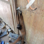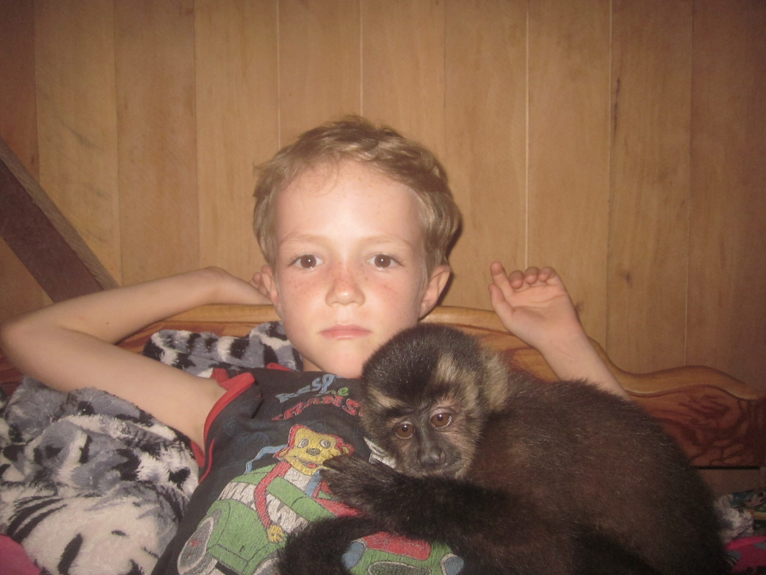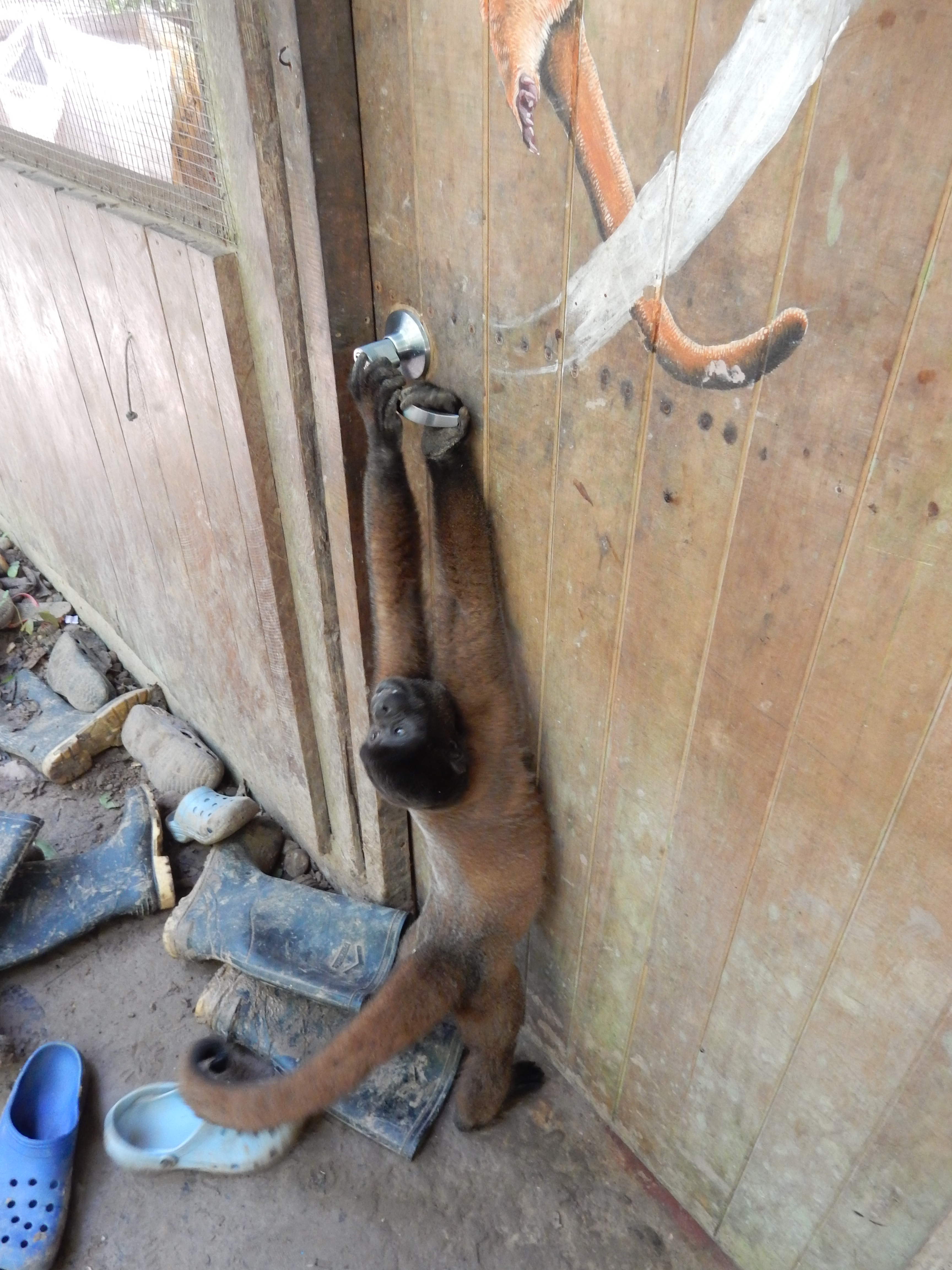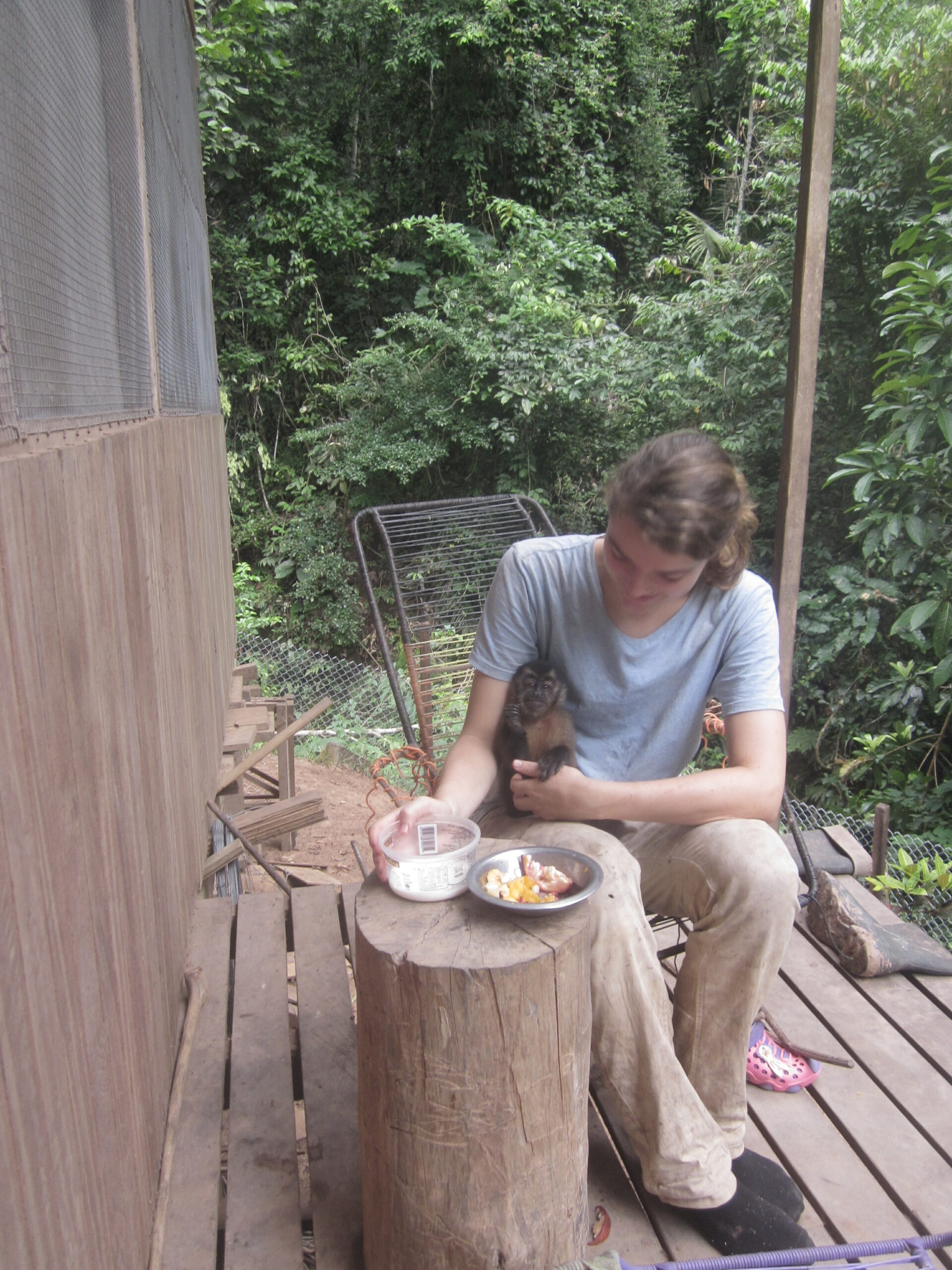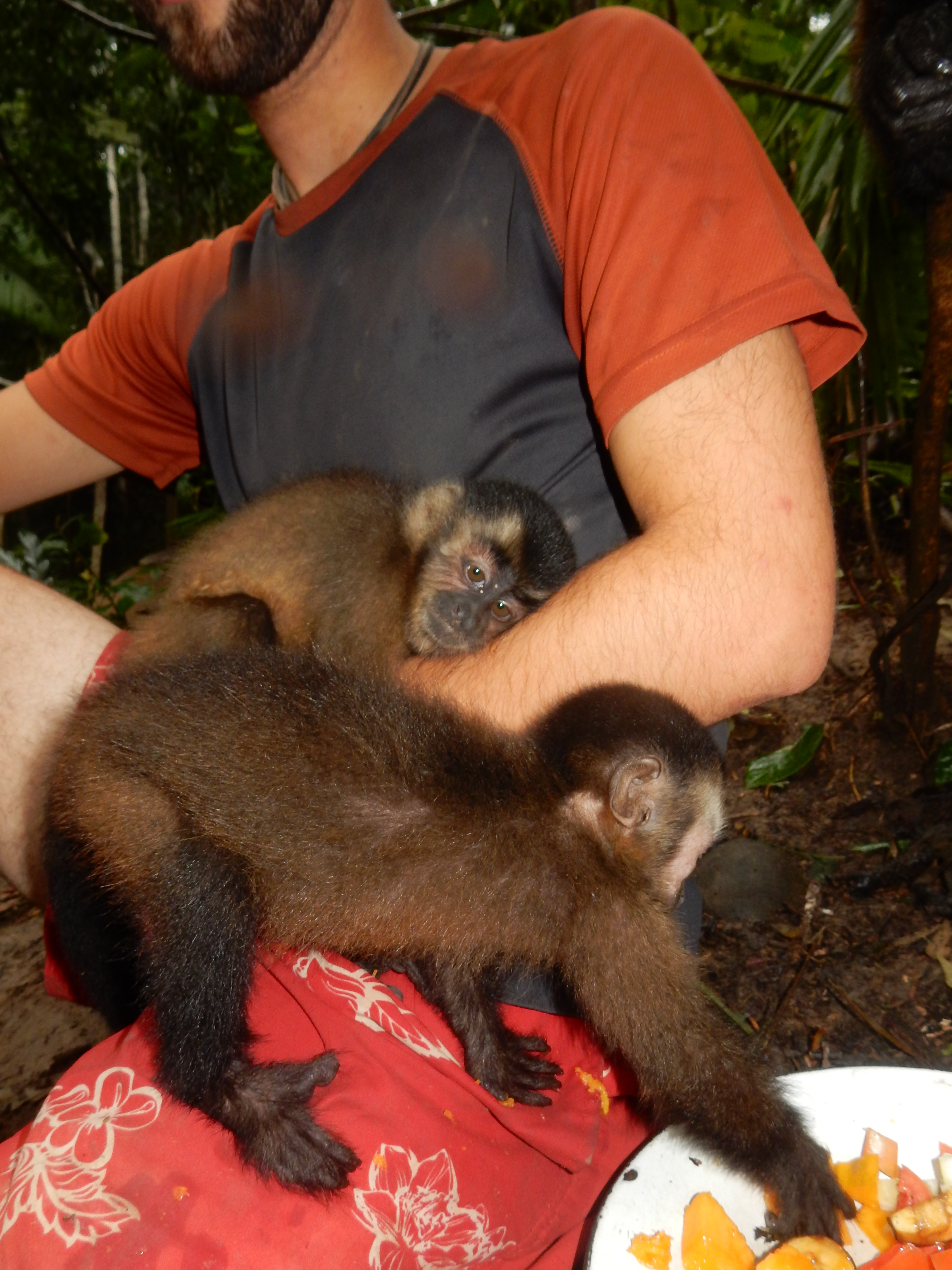 Of course, as with any young animal in a developmental stage, extra care must be taken to prevent illness or infection with these three. Despite all the precautions we take, unfortunately all three have shown signs of a potential parasitic illness in the last few weeks, mainly in the form of diarrhea (most of which ended up in the volunteers´ laps, much to their horror…). This in itself is not too serious, as treatment was given and generally their behavior was more or less normal. However, Khali was noticeably under the weather, strange for a monkey who is normally a very chirpy character. In reaction to this, Khali took up residence in the family house with Olivia and Douwe for more intensive treatment, is thankfully much improved and, at the time of writing, due to be returned to the others (who he is surely missing!) in the next couple of days.