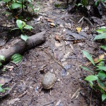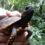 A young yellow footed tortoise was rescued by Kelly (volunteer) when she encountered a family on the path coming from out of the forest. A child basically handed the tortoise over when Kelly wanted to have a look. As Kelly does not speak Spanish it was a bit confusing, but the family seemed to intend for her to take the tortoise. We released it directly the next day.