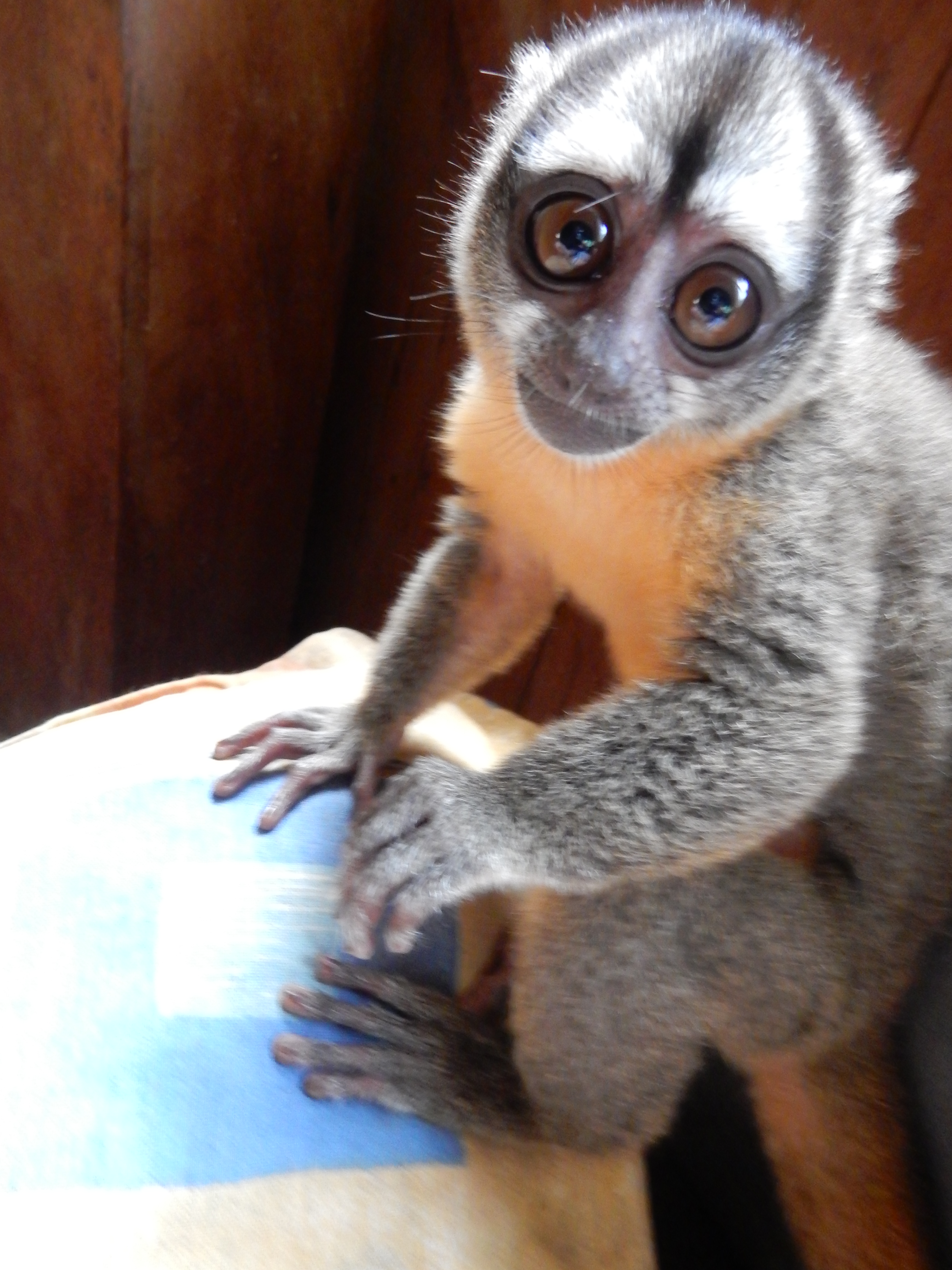 The hyperactive and very cute Sira continues to grow steadily, keeping Olivia awake even when not hitching a ride on her head! We are starting to begin the process of acclimatising her to the interior of a cage, with daily afternoon excursions to the clinic. A cage was prepared there especially for her to jump around on branches, vines and more.