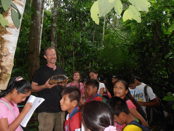 We also got visited by Kaylas classmates and their teacher who went over here on a field trip. Douwe took them all around Esperanza Verde to explain about the animals and we even got a hand in the finding our tortoises! Olivia gave them a tour in our clinic and let them look at poo samples with the microscope. We hope that the visit helps the children to understand more about the wildlife in this part of Peru.