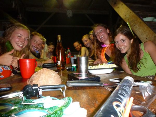 We celebrated Halloween with candy and a bonfire and of course we were all dressed up. At the side of the bonfire we had a Shrek with celery as ears, a Jane with earrings from leaves, a Tarzan with a skirt from palm leaves and a batman with wings made out of a garbage bag. The volunteers also got visited by captain hook and his companion (a.k.a. Douwe and Marlon) plus the lovely nobility Kayla.