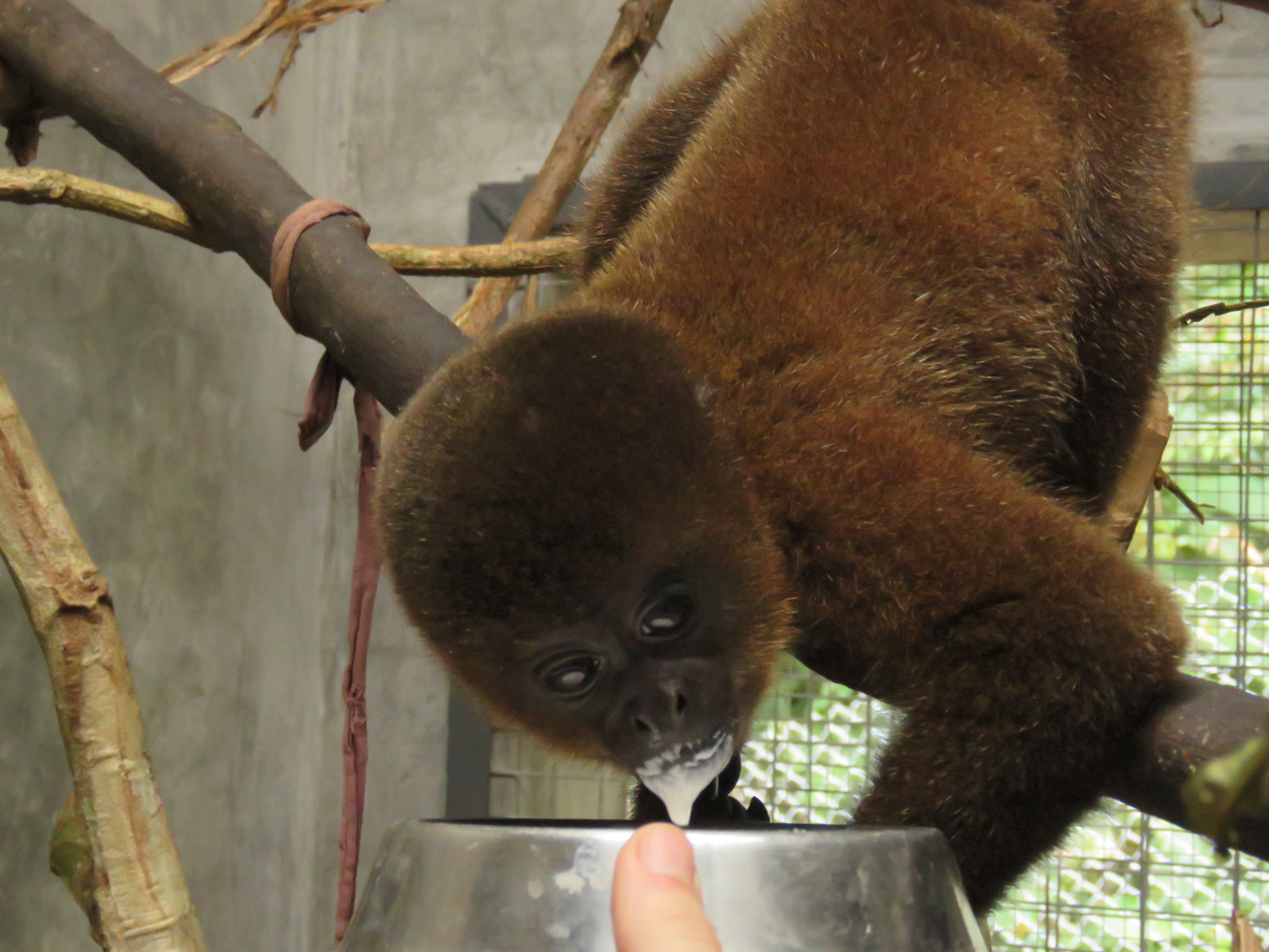 Lupa is one of the new arrivals from this month. She is a young woolly, a bit older than Chiquita. She arrived in good condition and is not used to a lot of handling by humans. But the curiosity is strong in this little monkey, whenever we feed her, she closes up to us to see what we are doing. After a bit more than a week (having had a medical check-up), we transferred her to the baby monkey cage. All of them get along well, but for the moment only Chiquita, Cintyh and Kali go outside during the day.