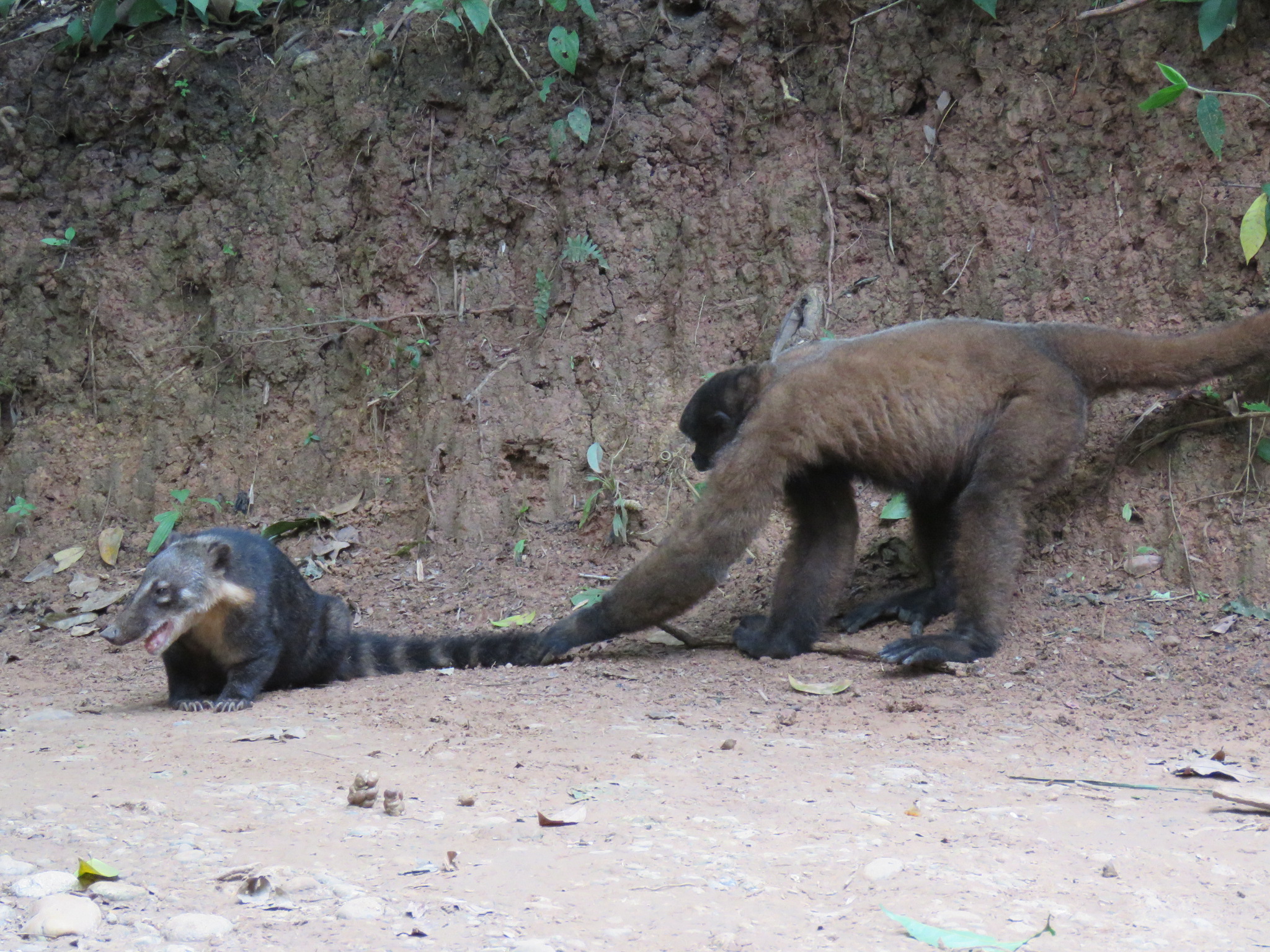 One of the recent released coatis showed up with an infected eye. Having always had one bad eye, we didn’t expect much from the treatment at first, but it showed that under the infection Kimsa still has a healthy eye. One of the volunteers has a veterinarian education and put it upon herself to treat the coati until the eye gets better. Naturally we had to put her in an enclosure for the time, the clinic is in full use! She looks now much better and was released just recently, directly roaming the forest floor for insects and worms.