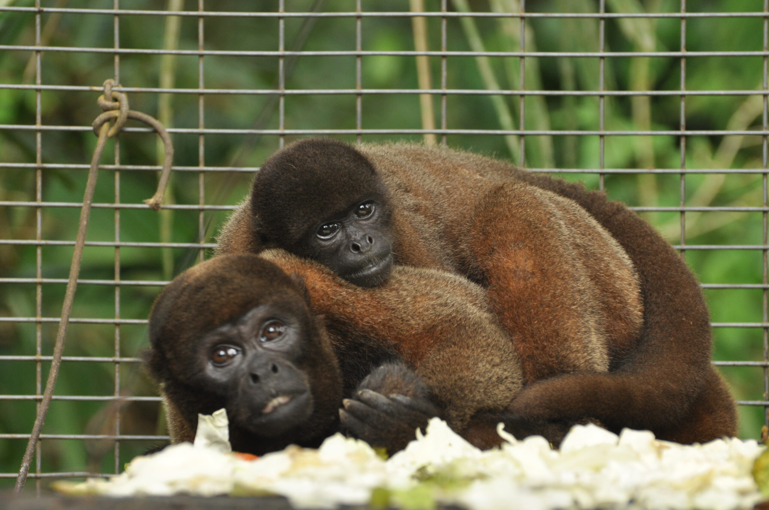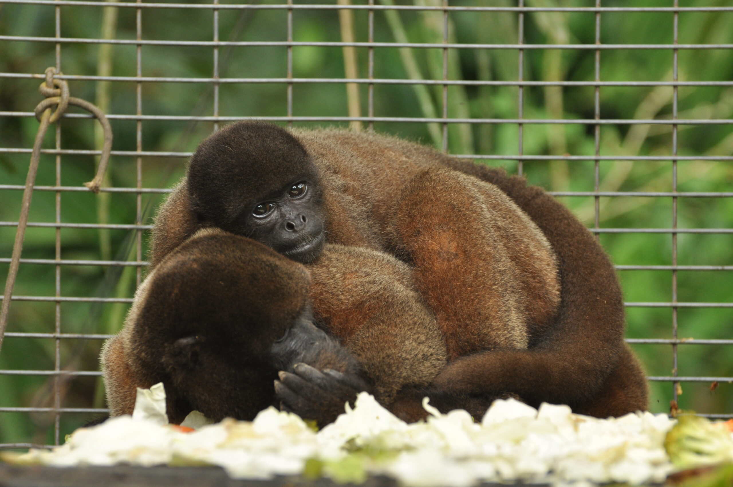 Last month we released Loki, Martin, Monano and Moyo (male woolly monkeys). They all seem to be doing really well finding their way to the monkey tables and are spending a lot of time in the trees. For a monkey that had been raised in a household in Lima, Moyo, is doing amazingly well. So far he does not want any contact with us; neither does he try to get into our houses. Loki on the other hand is trying to get a lot of attention, especially from new volunteers, by touching them and trying to ‘play’. As we want him to be able to live freely around the center we need to teach him that he should leave us be and stick to his own species. When he is older, with his canines fully emerged, we will need to be able to walk around without him trying to dominate humans as the alpha woolly. This is one of the reasons why it is so important for our volunteers and other staff members to stick strictly to the no-touch policy. By following these rules the chances are greater that Loki will develop natural behaviour patterns and spend more time up in the trees with the other monkeys, which is safer for us and healthier for him.