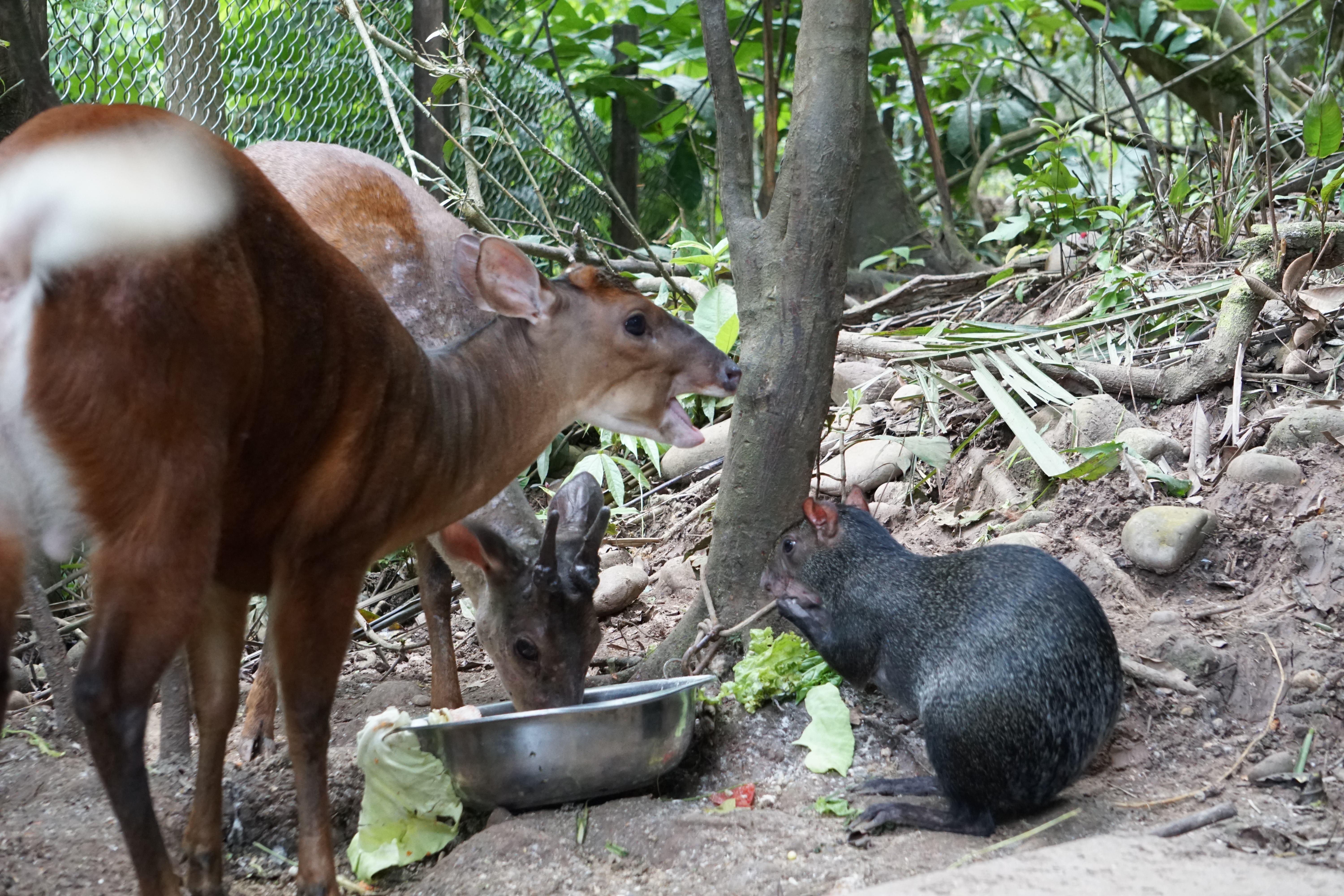 Ringo, Rabito (male red brocket deer) and Doquino (male agouti) are all doing great. It is for many their favorite part of the resident tour, as they are always happy to see you coming. And of course there will always be a monkey around to steal some of their nice veggies.