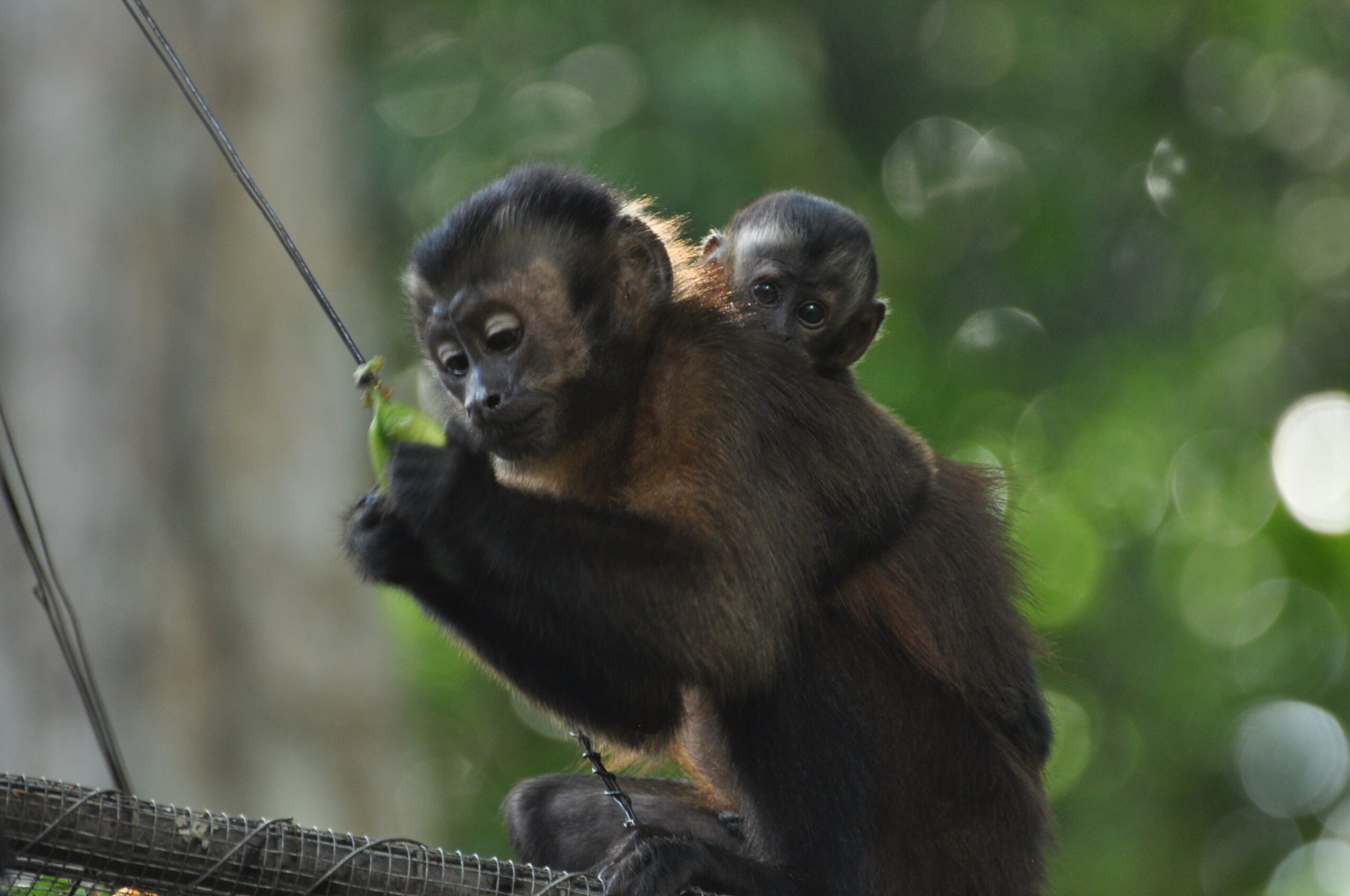 It seems that Capuchin Alpha-male Macu is doing very well in passing his genes. With both Nikita and Lia giving birth recently. Nikita’s baby (large headed capuchin) was growing up beautifully, although often without her mother, as Rioma (another but younger and more dominant capuchin female) often takes possession of the young. The baby, was already moving about on its own. Unfortunately the day after Christmas we saw Nikita walking around with her dead baby in her arms. Capuchin females are known for doing this, carrying their dead baby around for a day or two. Nikita never comes close to us, so we have not been able to see what happened to the baby. She carried it around for a half a day more and then probably let it go somewhere in the forest.