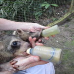 Mokwai and Rumani, the crab-eating raccoons, are doing good. Some small problems with their eyes and paws means that they need to stay in the SUST Animal Orphan Hospital for a while but they now spend some time outside as well. During the day they are staying at the La Sapa cage where they seem to enjoy being outside exploring. They have also started eating little snails alongside their normal food and milk.