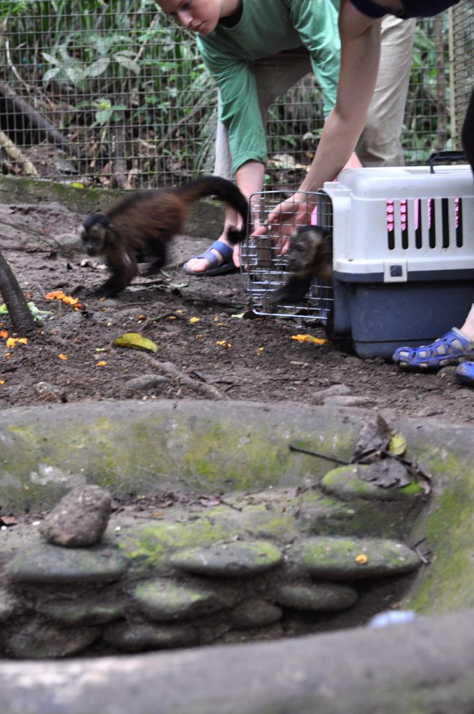 The three females which were lured back into the cage after it had accidentally been left open are now released. They enjoy their freedom and are hanging out with the other capuchin monkeys. Of Selma (female brown capuchin) and Kaito (male white fronted capuchin) we have only heard that Machico saw them possibly with a group of squirrel monkeys at the plantation. We hope it was them and that they are doing well.