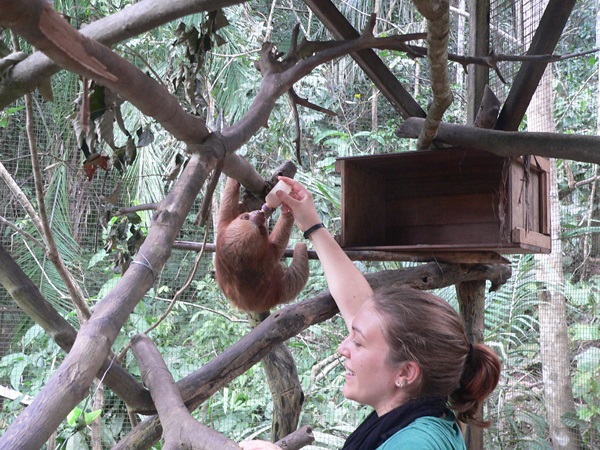 Micas attraction to Alexandra, our assistant manager, continued to stay strong and once again she managed to get to Alex in order to give her a ’love’ bite. It was unfortunately placed around the Achilles tendon so Douwe had to make some crutches for her to be able to move around. As we can´t keep going on like this we decided to catch the big new male Maku and match him up with Mica. They are now together with Kres, the young female brown capuchin we received last month, in La Sapa cage. It was not love at first sight, but at least they spend the first night sleeping close to each other. And after two days she was giving him a full grooming session. We hope it will work out, and Mica finally stops searching among us for a mate. Who knows, we might have the first baby capuchin in about 6 months!!