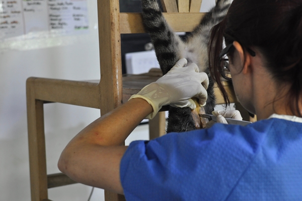 A surprise visit we did not expect: a house cat! One day a grey cat was seen at our plantation, and later near the garbage burning oven. Then some time later she followed one of the volunteers and we got her into the clinic. We asked around in the village if someone was missing a cat, but no one came forward. Very skinny and full of parasites we took her in. We have now found a good home with a local family. They said they would take her, but as they also had a male, they would prefer not to have kittens. Marlen castrated her (yes, you do say this also with females when you cut out the ovaries) and treated her for parasites and now she is almost ready to go home again. Someone also brought the male cat over, to be castrated, and to get to know Misha, before they go home together. Since we began to go to the village a few years ago as part of a deworming program, people come to us more and more for help with their pets. Through this programme we have been able to help with deworming, infections and castrations to keep the growth of abandoned dogs and puppies down. This has all been possible thanks to the ‘Susy Utzinger Stiftung’ in Switzerland, as they financed these programs as well as all the running costs of the Hospital.