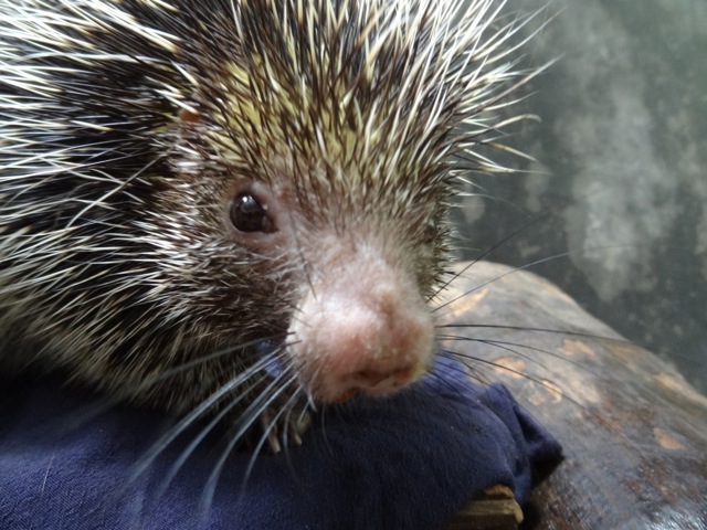 Soraya our Amazonian dwarf porcupine is still recovering from her recent amputation of her foot. Her wound gets cleaned and bandaged daily. She is able to move around with her leg which is a good sign, but for now will stay in the clinic till the wound has fully healed.