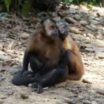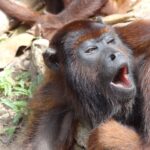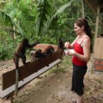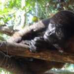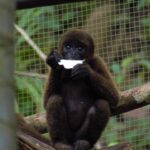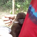 Talisha a new young female woolly monkey who was recently brought to us from one of the local villagers. She spent a few weeks up in the clinic receiving milk and learning the ropes of being a wild monkey and not a pet. After a few weeks she was moved down into Pepe cage along with Nakoya to try to help them to bond and to give Talisha a bit more contact with our outside monkeys and less with humans. At first she didn’t like this and kept trying to follow volunteers out of the cage and sometimes clinging to them while giving her milk but now she is settling nicely. Hopefully she will be released soon and can join more of her own kind in the trees.
