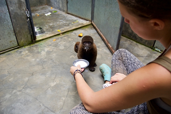 Last Friday Koki arrived to Esperanza Verde. He was kept as a pet in the nearby village Bello Horizonte and one of the workers brought him here. At the moment Koki stays at the clinic for a couple of weeks, this way we can have an eye on him and make sure he is doing fine.