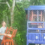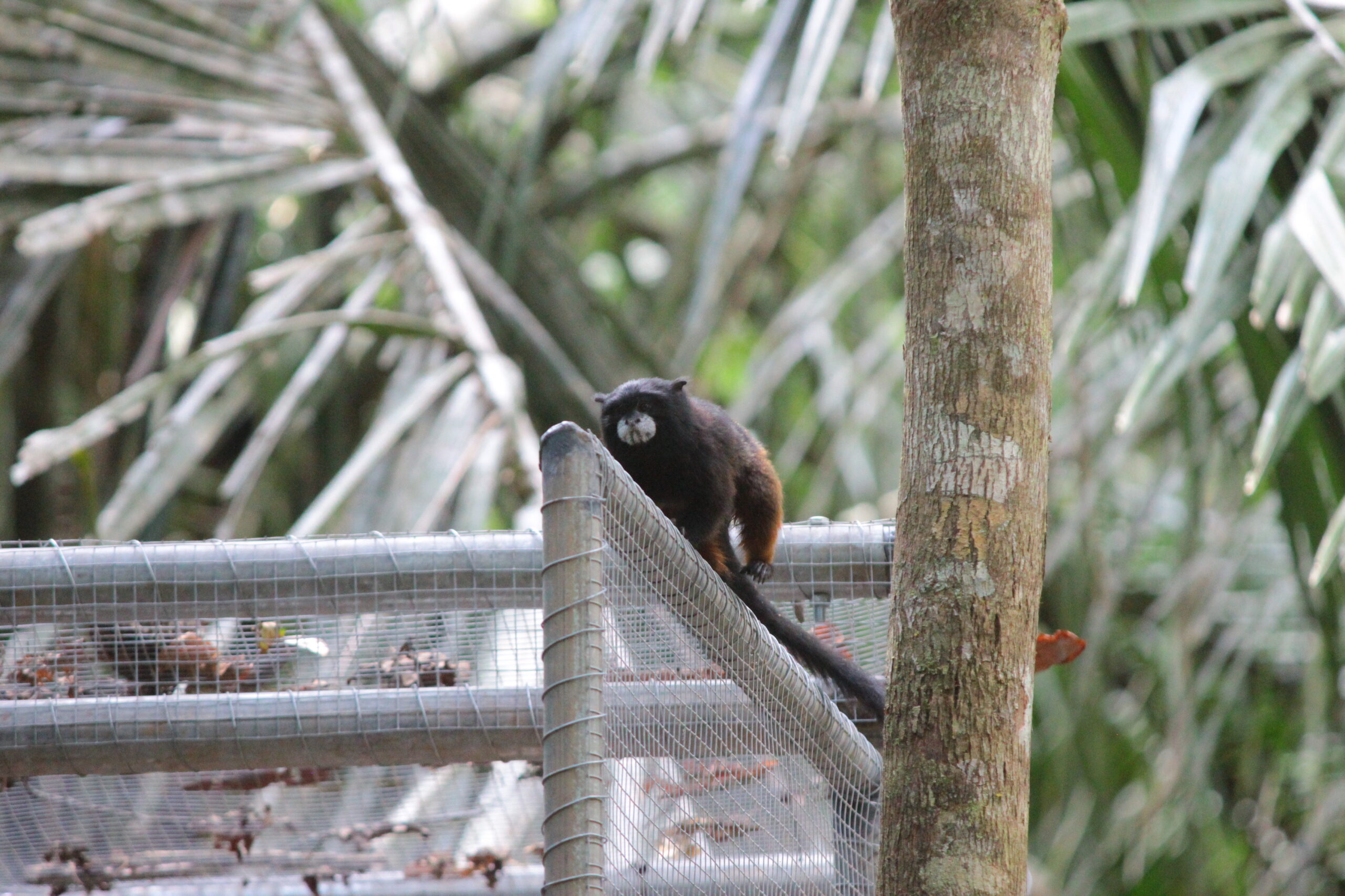 Tokay, Tiriko (male saddleback tamarins) and Noema (female squirrel monkey) have been released. After a few weeks of getting used to their new environment we have opened the cage. We believe Noema joined the group of squirrel monkeys resident in Esperanza Verde and enjoys life as a free monkey again. Tokay and Tiriko are roaming in the trees at daytime, and seek the safety of their cage at night.