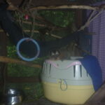 Churi (many-banded aracari), has been of big worry lately, and after a lot of research and communications with veterinarians in Europe, we all agreed there is not much we can do for his problem of his toes. He does not seem to have pain and is still his happy old self. So we adjusted his cage to see in which way we can help him best. We moved him back to his outside cage (the Lucia cage) where the branches are broad enough, so he will be able to fly to them and sit steadily enough on them. The volunteers come in three times a day to eat feed him and give him some attention and enrichment.