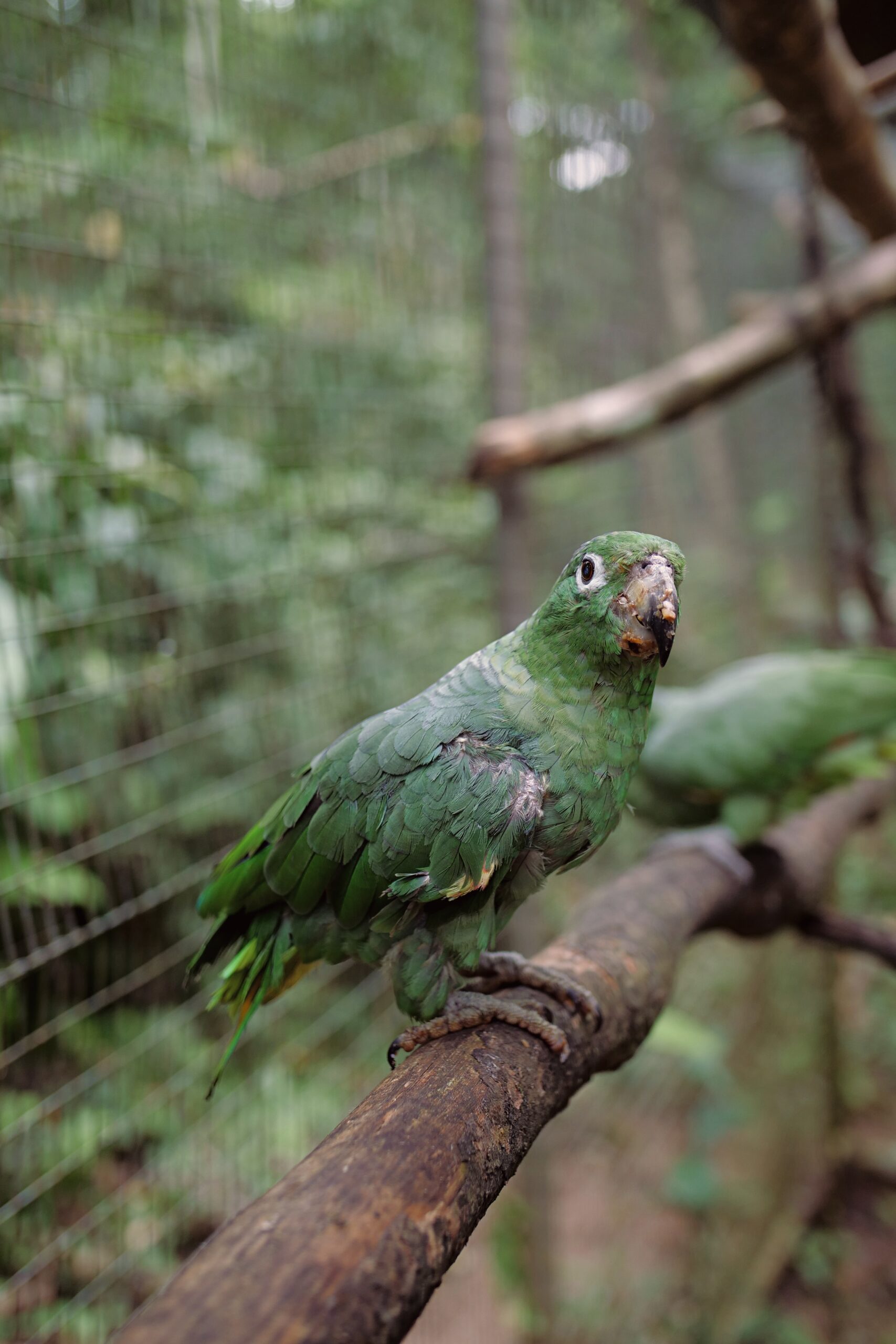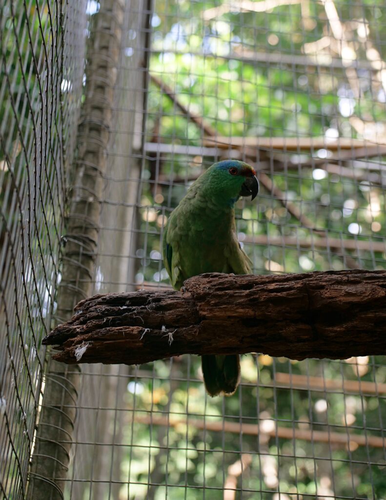 Kipa, the festive Amazon parrot, has recovered well after her wing amputation, and was moved to the front enclosure of the Elmo Aviary. Despite a few initial falls, she has adjusted well and is now living with other Amazons, including Dani (a Mealy Amazon), one of our oldest residents.