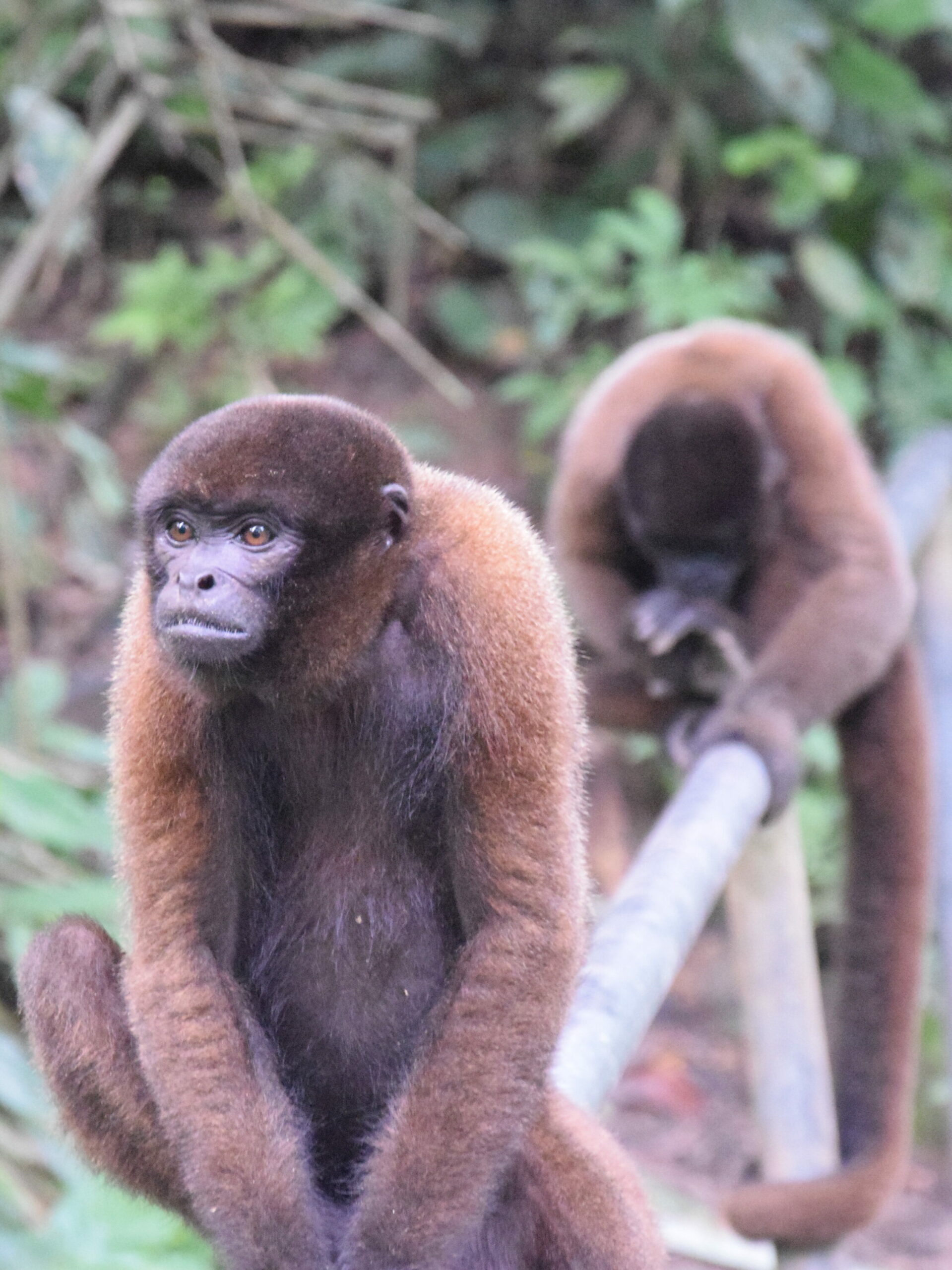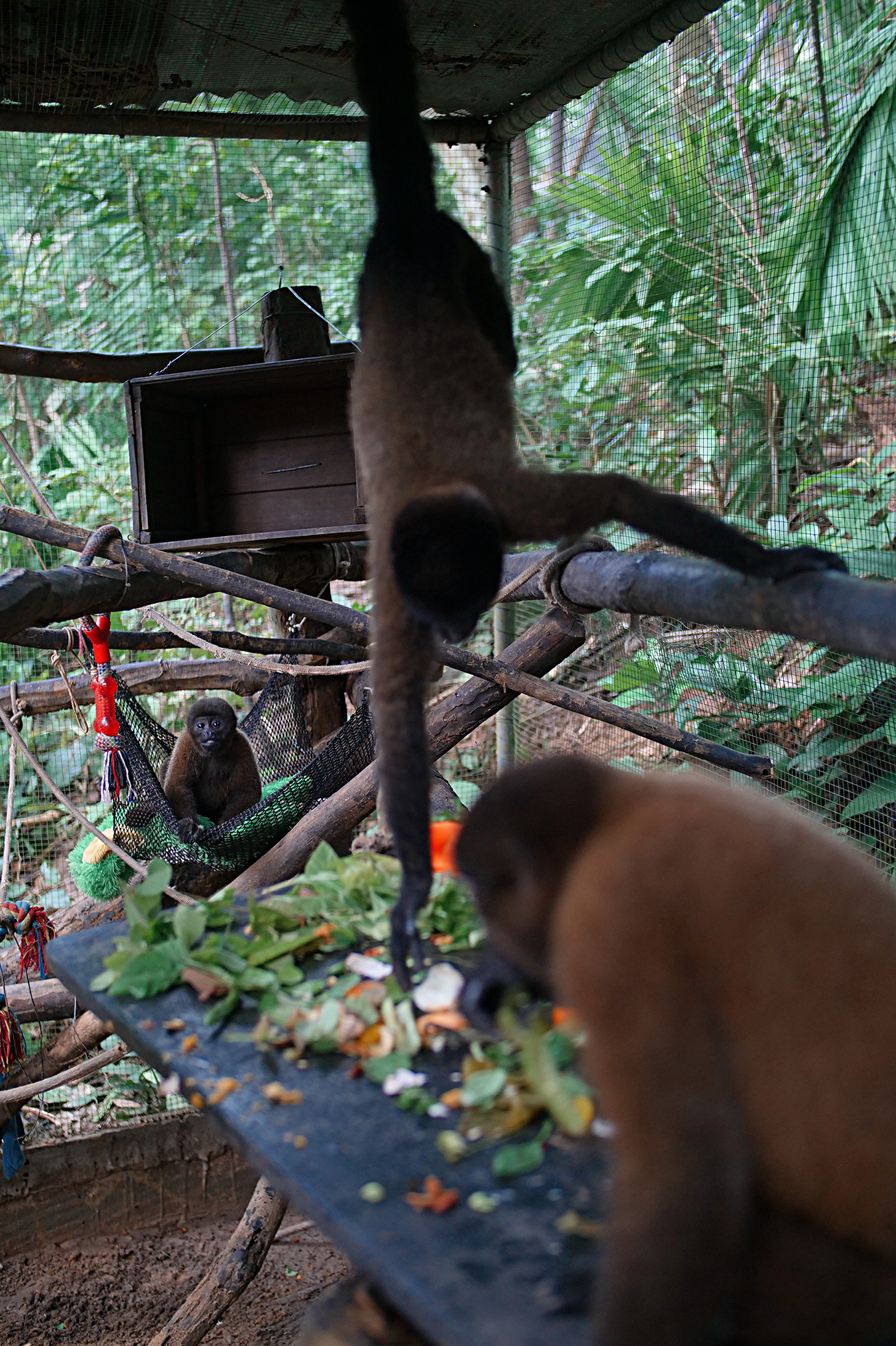 After being kept as a pet her whole life, Nola, a young female woolly monkey is gradually being weaned off of human contact and introduced to others of her kind. Panchin, adult male, and Sinya, young female, did such a good job welcoming her that Nola is now in an outside enclosure with Moana and Sinya. It’s been a heartwarming journey, with volunteers spending less and less time with her and seeing Martin, the Alpha observe and approve of the troop’s newest addition.