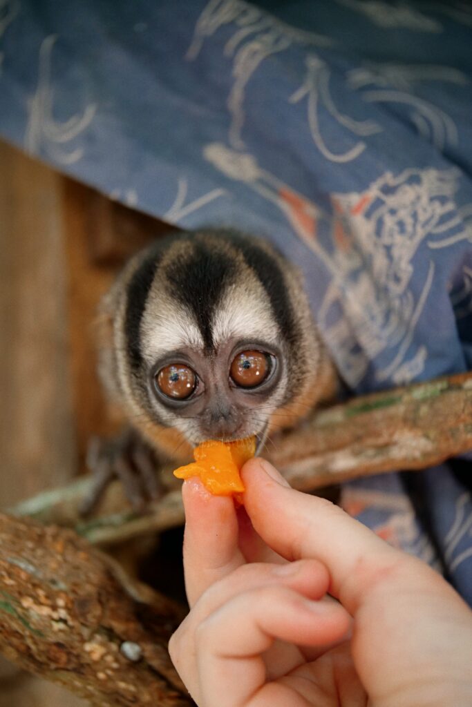 Camilo, a young male night monkey arrived in need of intensive care. Now, he’s thriving under the dedicated care of Jules, our veterinary student. He recently moved to an outdoor enclosure to slowly adjust to jungle life.
