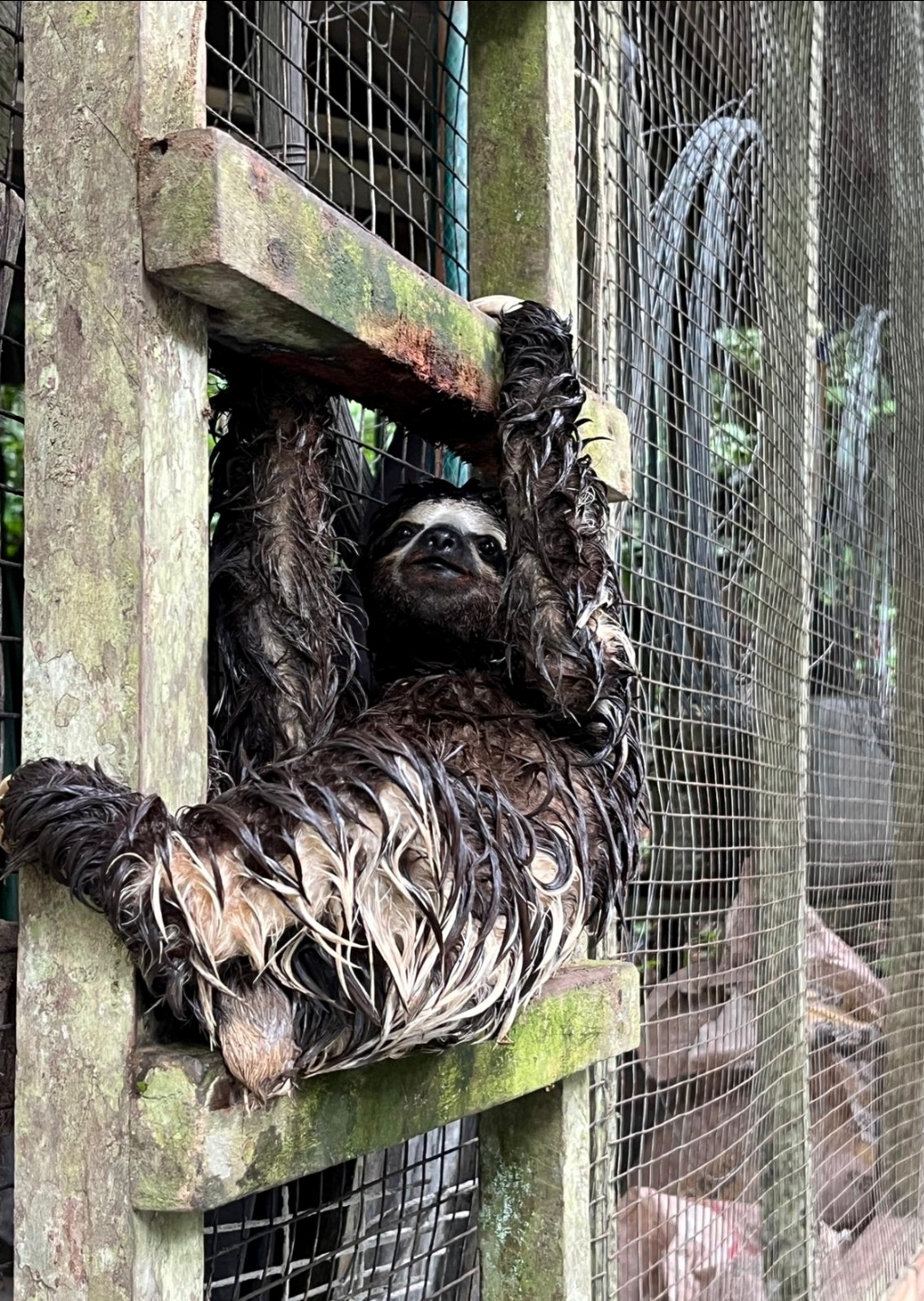On a brighter note, we’ve had a repeat visitor—a three-fingered sloth! She’s been visiting our Almacen (fruit and veggie storage), where we found her chewing and licking the wood. Concerned for her health, we gave her a quick check-up, weighed her, and made sure we could identify her if she returned. It seems she’s made her home near the volunteer kitchen, and she visits regularly, even munching on old firewood. It’s fun to see her back and thriving. Maybe it’s time we give her a name…