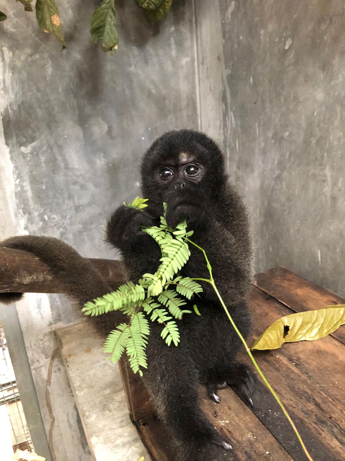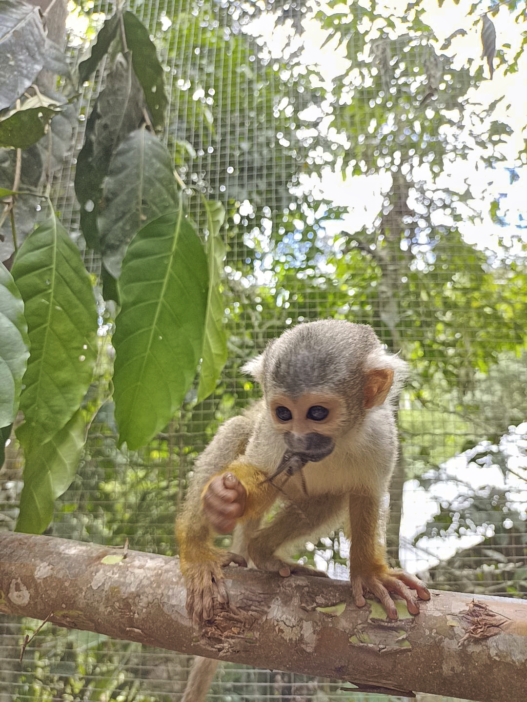 Kaluha (female woolly monkey) was brought into the clinic to remove two botflies from her arm. As she’s also struggling with the well-known parasite P. Elegans, we decided to keep her a bit longer for some extra care and treatment. She sure loved the attention at first, but she’s happier to be back with the rest of the bunch!