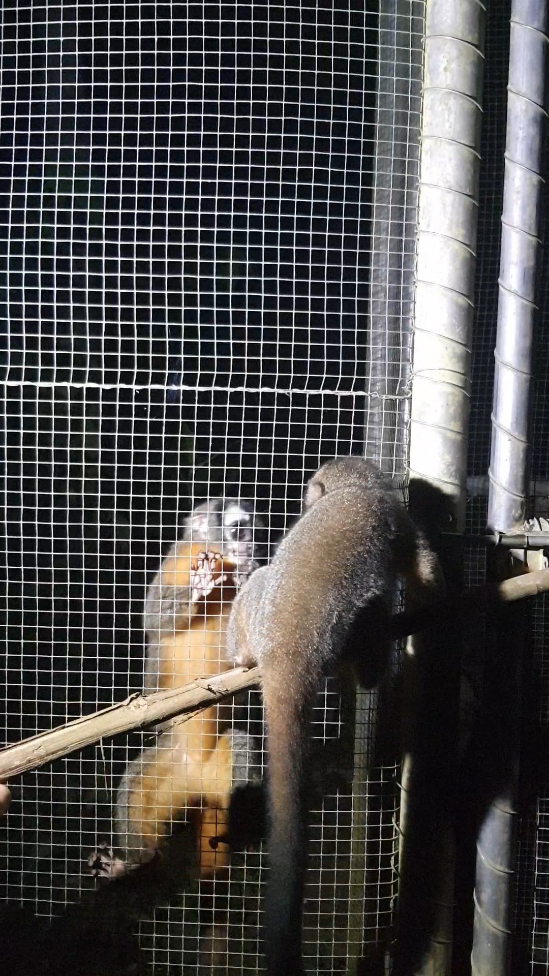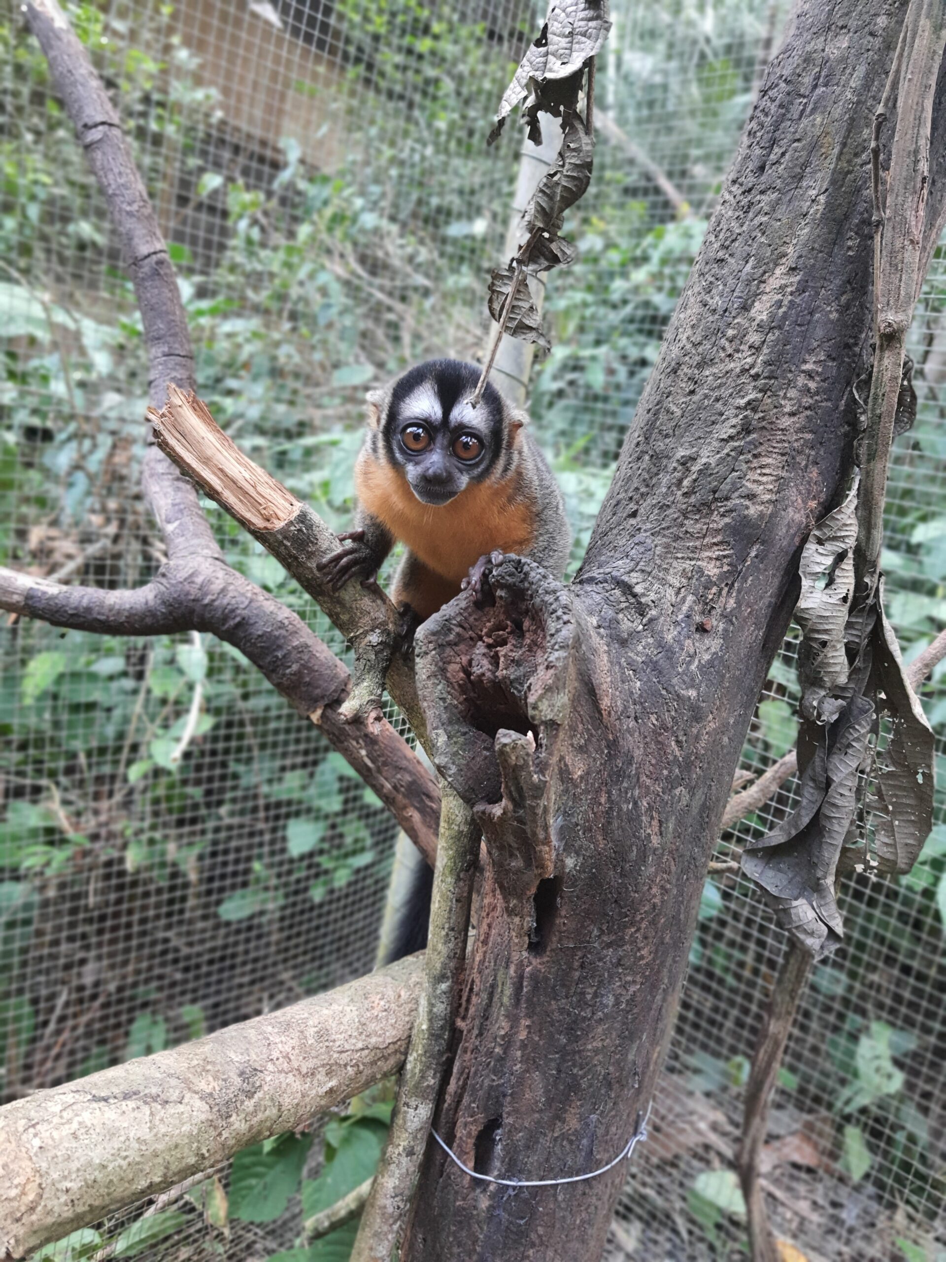 It was time for baby night monkey Yuna to take her next step towards independence; moving into the “Lucia” enclosure. Where she hunts, hops, hides, and gets the occasional hello through the mesh from Otis (adult male night monkey) and Ushari (young male night monkey).