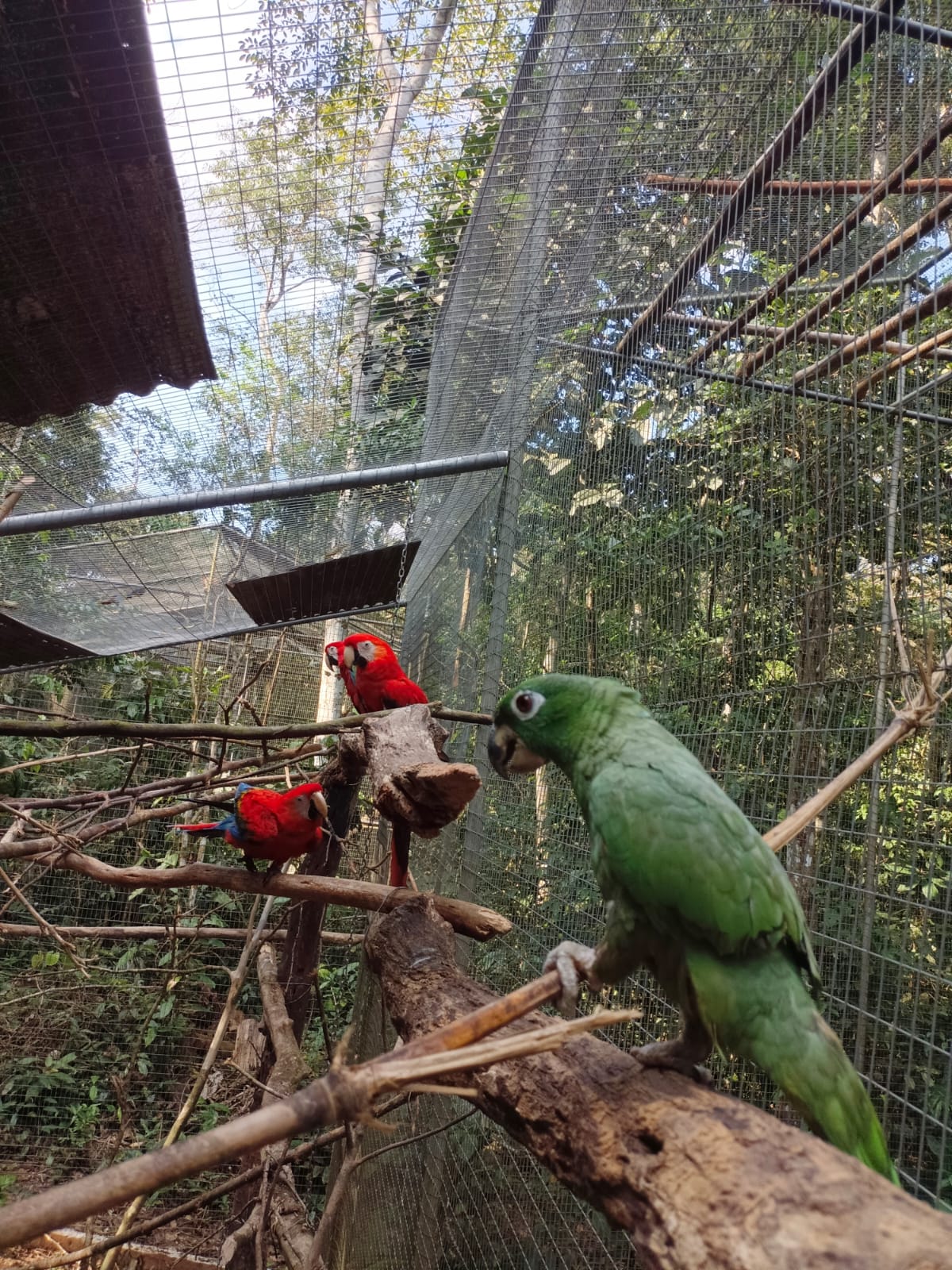 There’s never been a day that’s gone according to schedule at EV, that’s just the nature of what we do (and why we love it… most of the time). One morning we woke up to a giant hole, bent tubes and four birds missing from the “Pichu” aviary. A tree collapsed on it! Lucky us, Geyler was around to clean up and repair – which took two days. Arthur and Gabriel caught the three escaped Amazons and returned them to safety. Sadly, Mebi, the escaped Scarlet Macaw, passed on his way to the clinic. The monkeys found him on the floor, but as we couldn’t find any wounds, our guess is that his heart couldn’t handle it. A member of the EV family since 2014, Marlon knew Mebi as the macaw that always tried to munch on his (at the time) tiny feet.