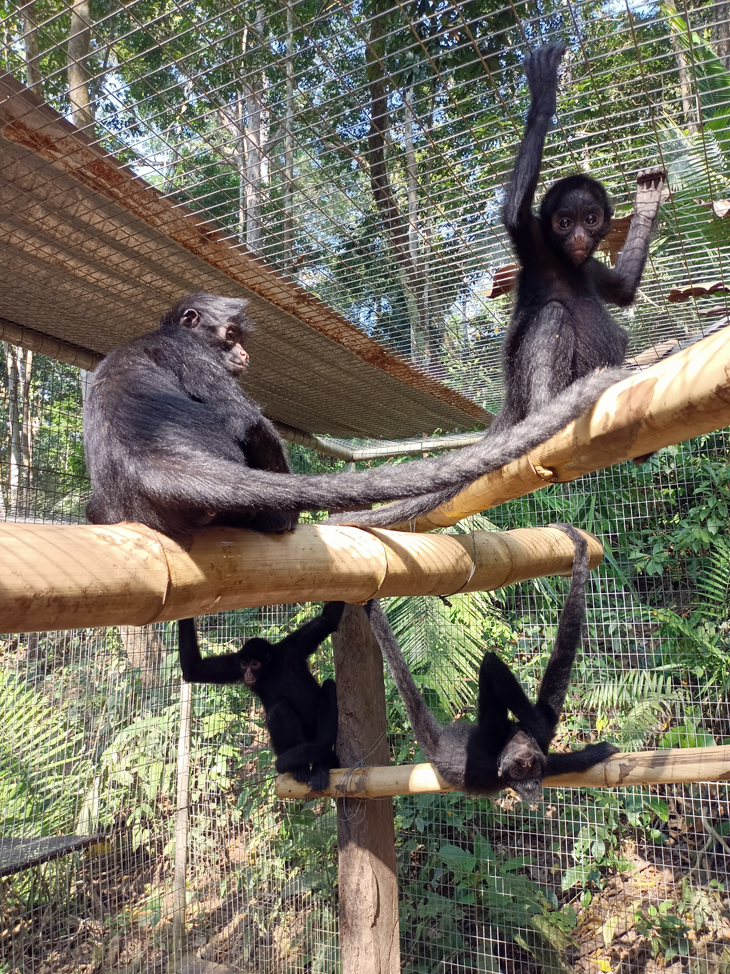 Katinka’s affinity for making holes in mesh windows has kept the volunteers busy. It was a sign that she needed something else to focus on: the new and young spider monkeys from quarantine! Saila, instantly became friendly, while Taiga (the toddler amongst them all) and Akuro (the only male) were more focused on the outside world than Katinka’s bonding efforts.