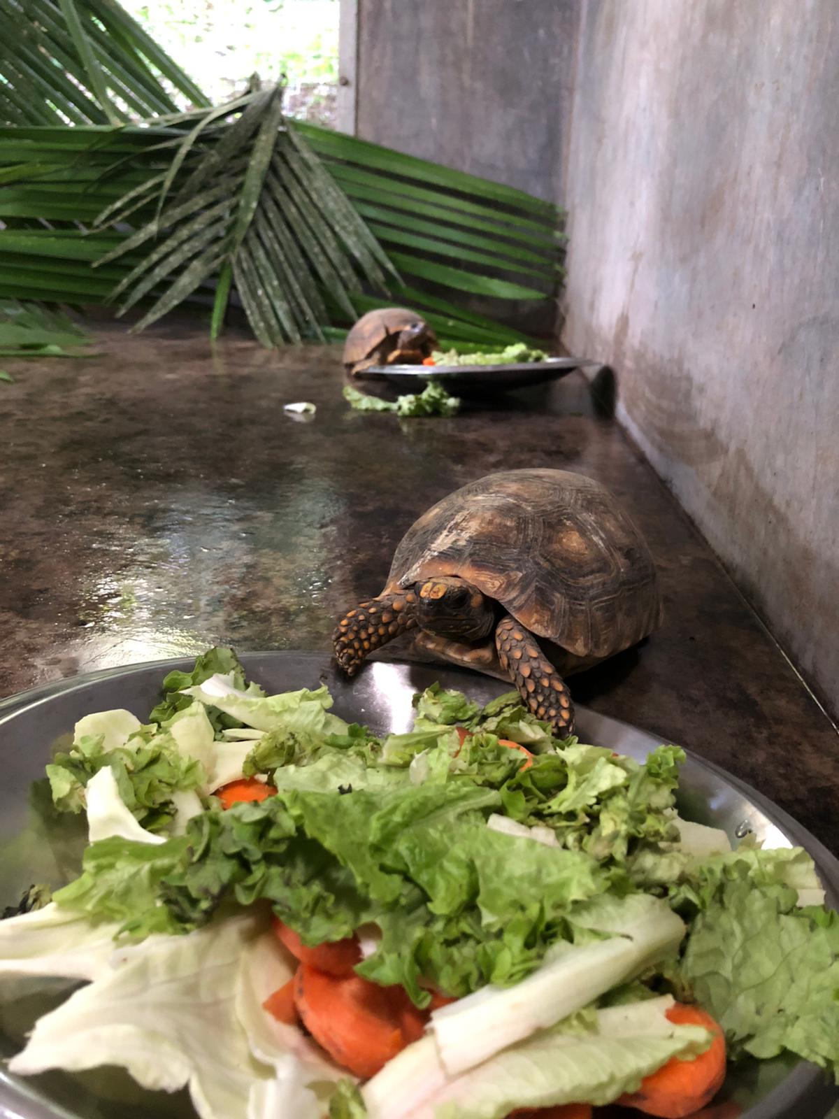 - Eight yellow-footed tortoises. One of which we quickly named Paquiska. She had two broken hind legs, making a future release impossible. Until we find a long-term solution, Paquiska will be taken care of by the family