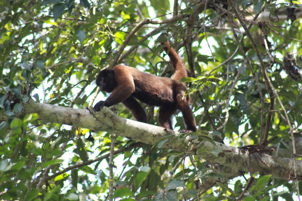 Moyo (adult male woolly monkey) and Darwin (adult male howler monkey) got into a fight… and Moyo ended up with a serious wound on his leg – luckily our volunteer team is full of veterinary students. Moyo’s surgery went well and after a couple of weeks of recovery, we decided to let him join the outside group instead of going back into an enclosure. He hasn’t been free to roam since 2021 due to his medical ups and downs. Of course, Martin (the resident alpha male) had to shake some tree, puff out his chest and cause a bit of a ruckus, in order to show everyone, he’s still the big boss, which Moyo happily accepted.